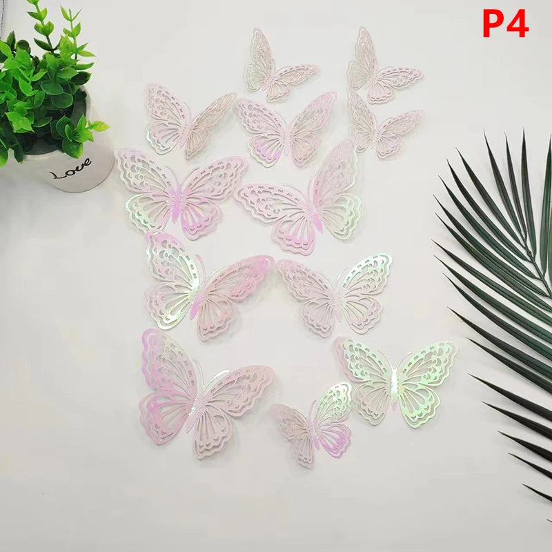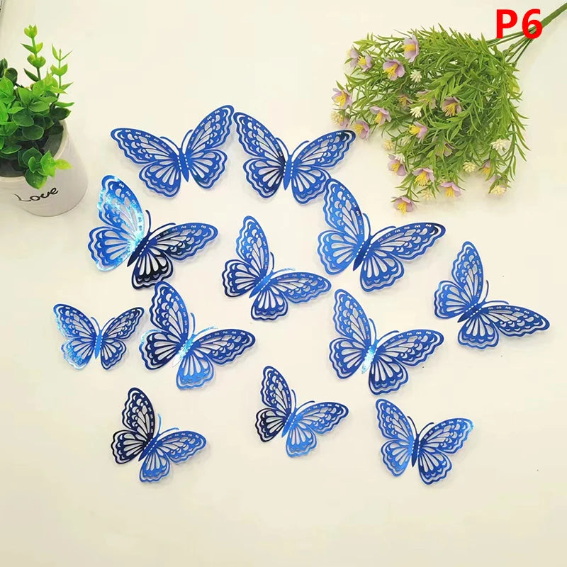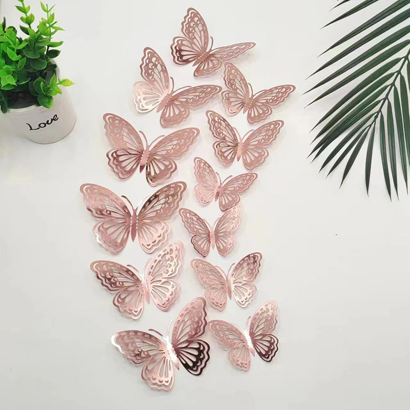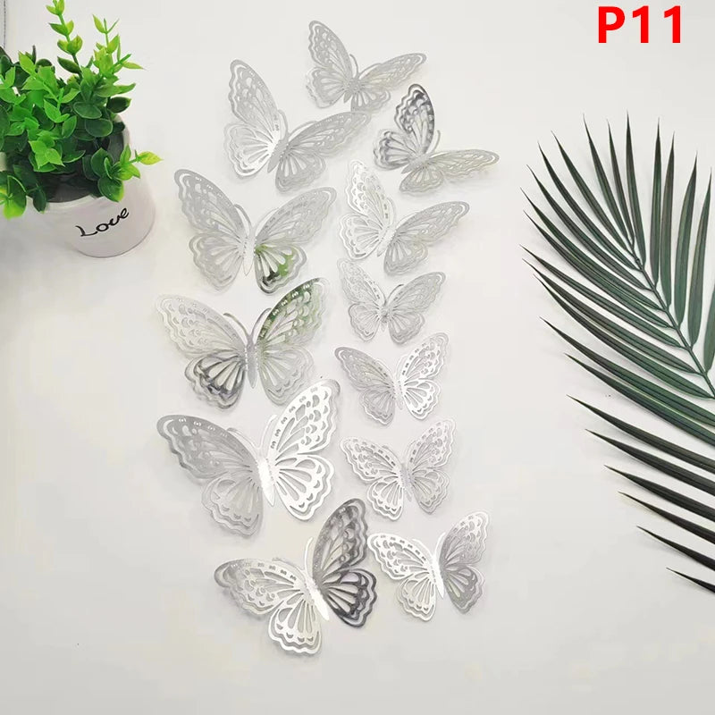 12Pcs 3D Hollow Butterfly Wall Decal Mirror Wall Stickers For Kids Room Home Wall Decoration Fridge Sticker Wedding Party