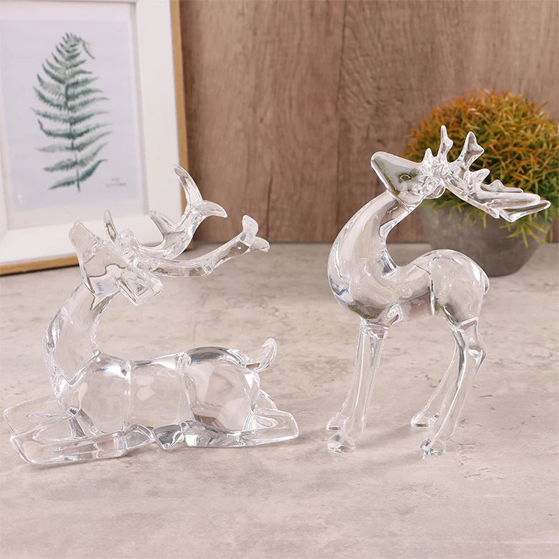 1Pc Crystal Deer Figurines Desktop Ornament Room Decor Transparent Elk Reindeer Sculpture Home Office Decoration