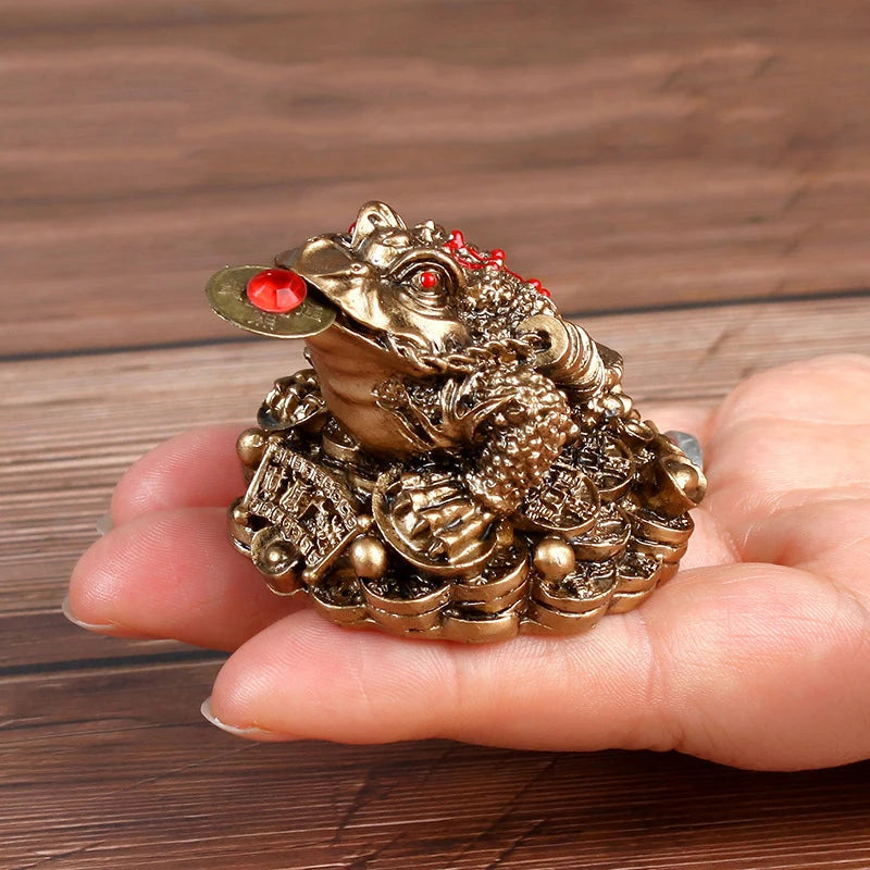 1PC Tabletop Ornaments Feng Shui Toad Money Resin Fortune Wealth Chinese Golden Frog Coin Home Office Decoration Lucky Gifts