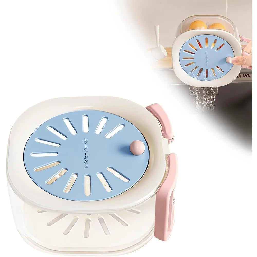 2 in 1 Drainer and Strainer, Collapsible Handle Multifunctional Draining Basket with Lid, Kitchen Fruit Colander and Vegetable W