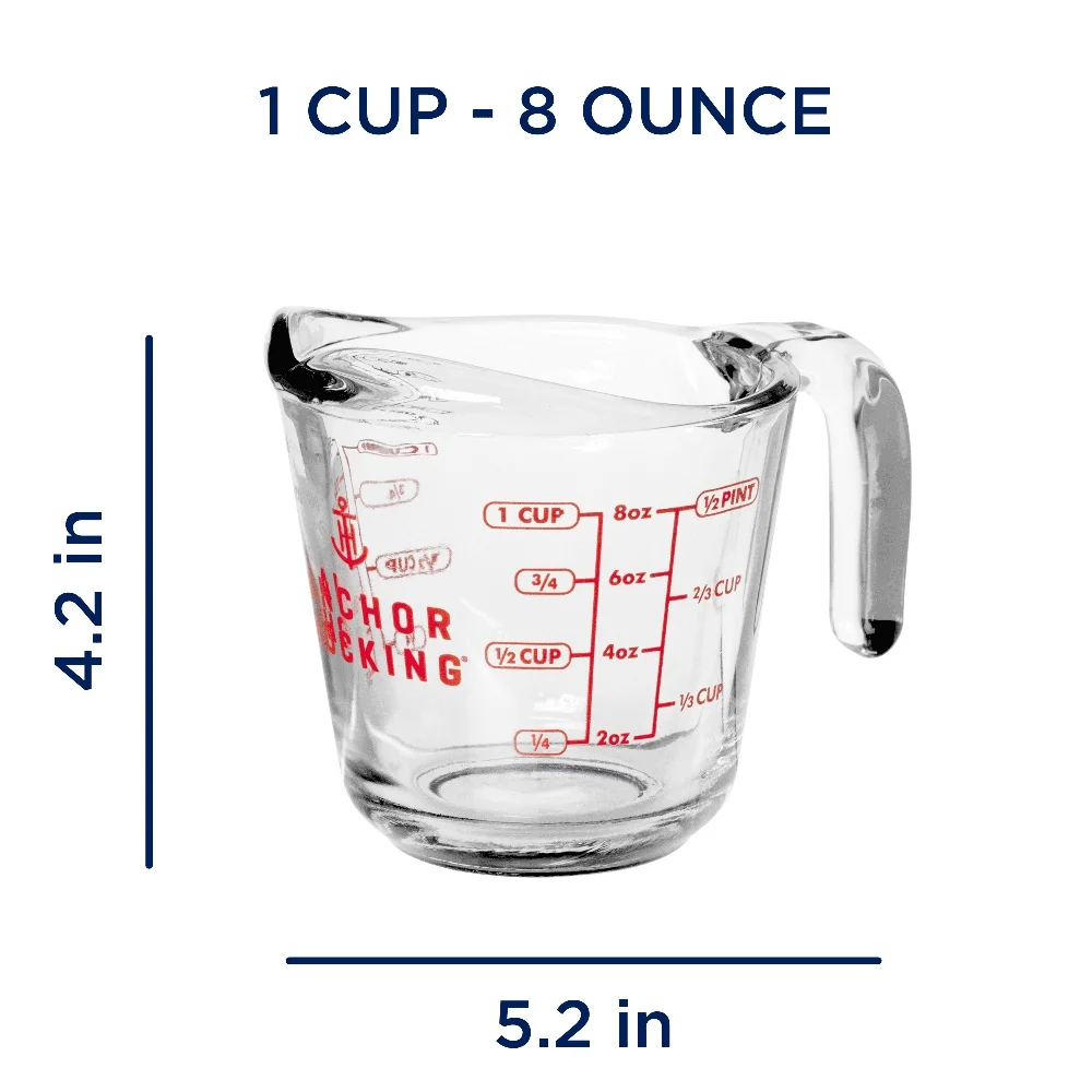 INCLUDES: (1) 8-ounce glass measuring cup with a signature spout and handle for easy, clean pouring to reduce messes and ensure you can be as exact as possible in your cooking.