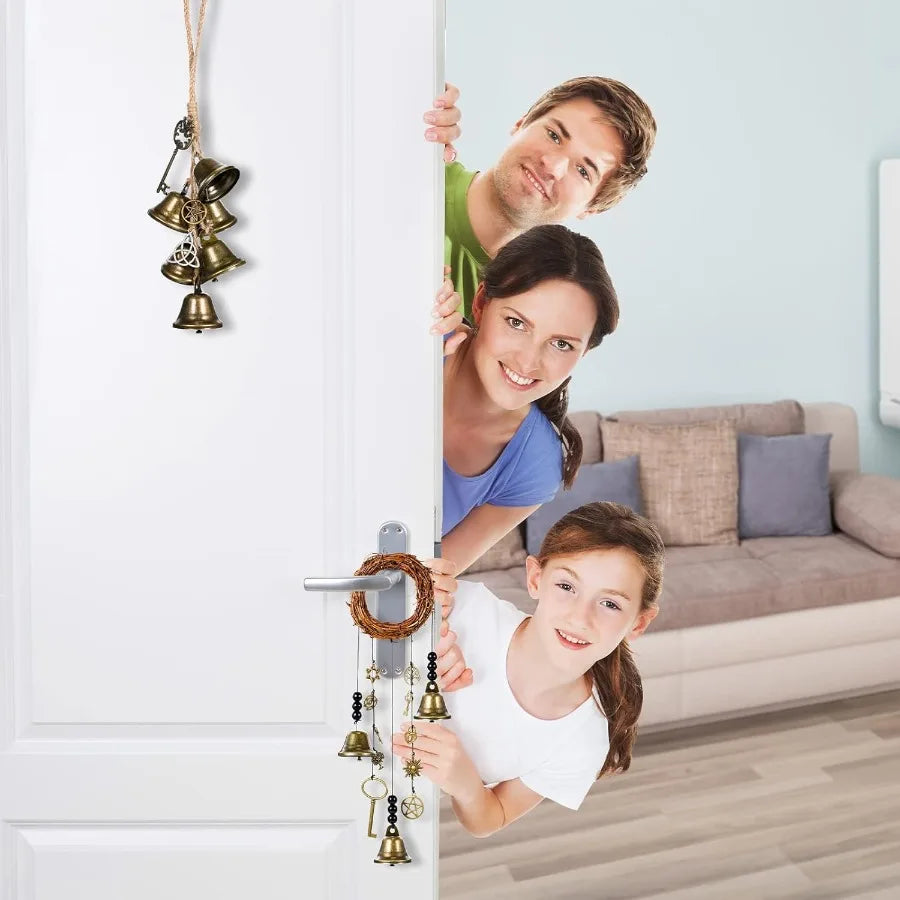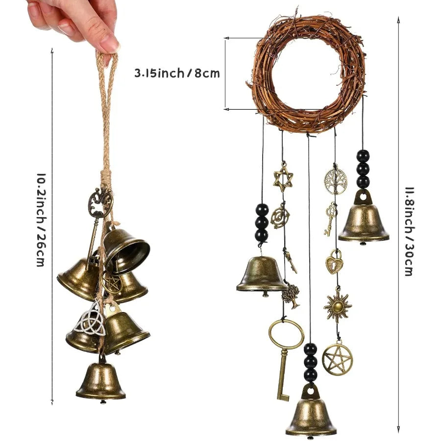 2 Pieces Witch Protection Door Hangers Wind Chimes Wreath Handmade Hanging Bells Wiccan Magic for Home Doorknob Witchcraft Drat