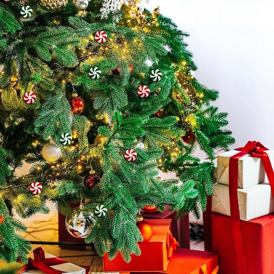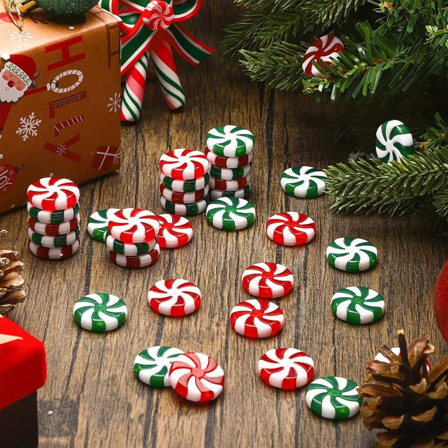 200 Pcs 25 mm Fake Christmas Candy Cane Peppermint Ornaments for Christmas Tree Decorations Xmas Candy Decor Ornaments Craft fo
