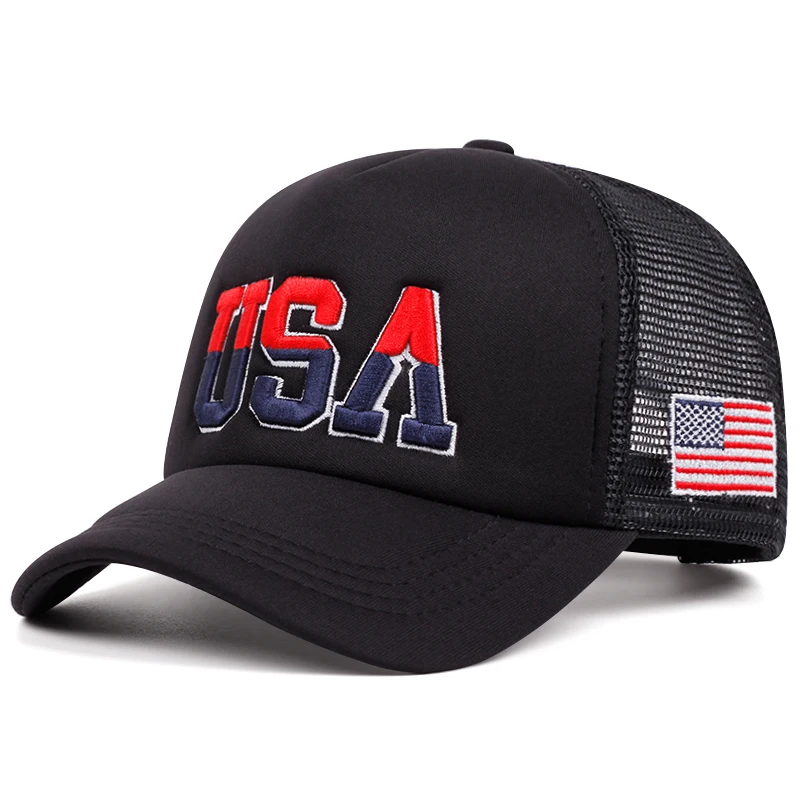 Cotton Mesh Hat USA Side Embroidered American Flag Fashionable Hip Hop Hat Outdoor Sunshade Hat Adjustable Baseball Hat