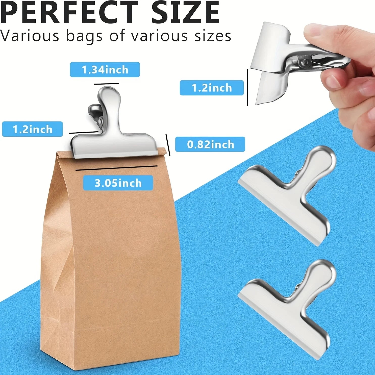 20pcs Silver Chip Clips - Strong Hold for Chips, Snack Bags, Fridge & Whiteboard | Kitchen & Office Organization, Food Bag Clips