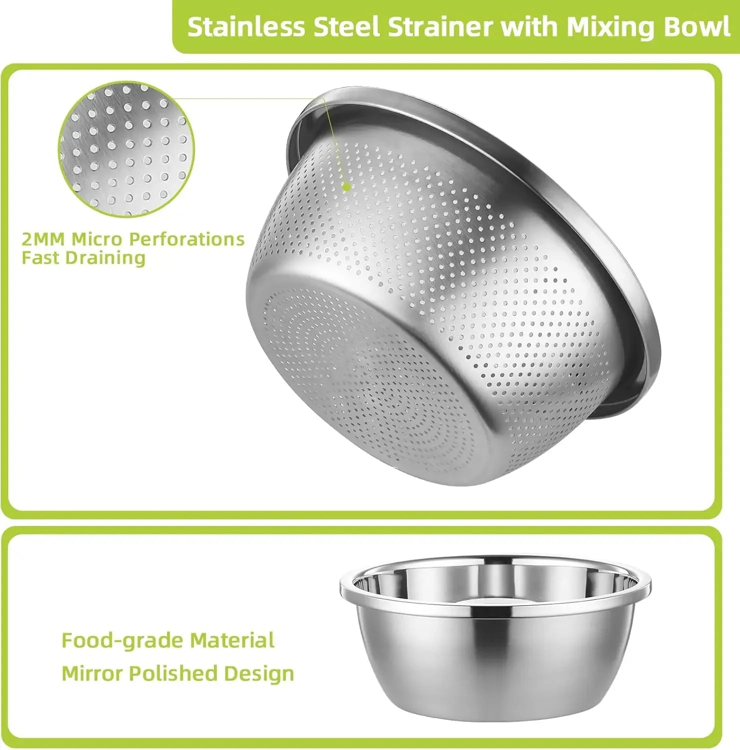 304 Stainless Steel Colander Microporous with Mixing Bowls, 2-Quart Strainers and Colanders for Kitchen, Food-Grade Strainer for