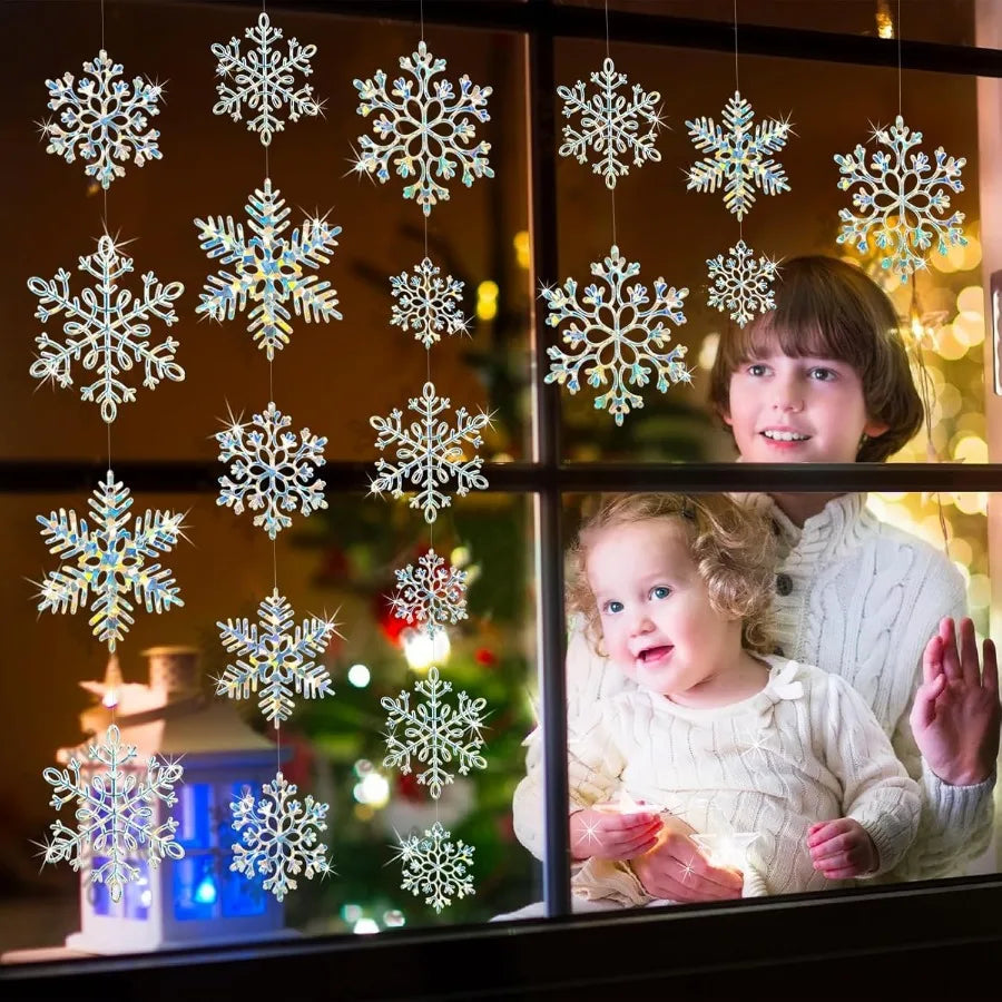 36 Pack Christmas Ornaments Snowflakes Decorations Iridescent Plastic Snowflakes Hanging Decorations for Winter Holiday Christm