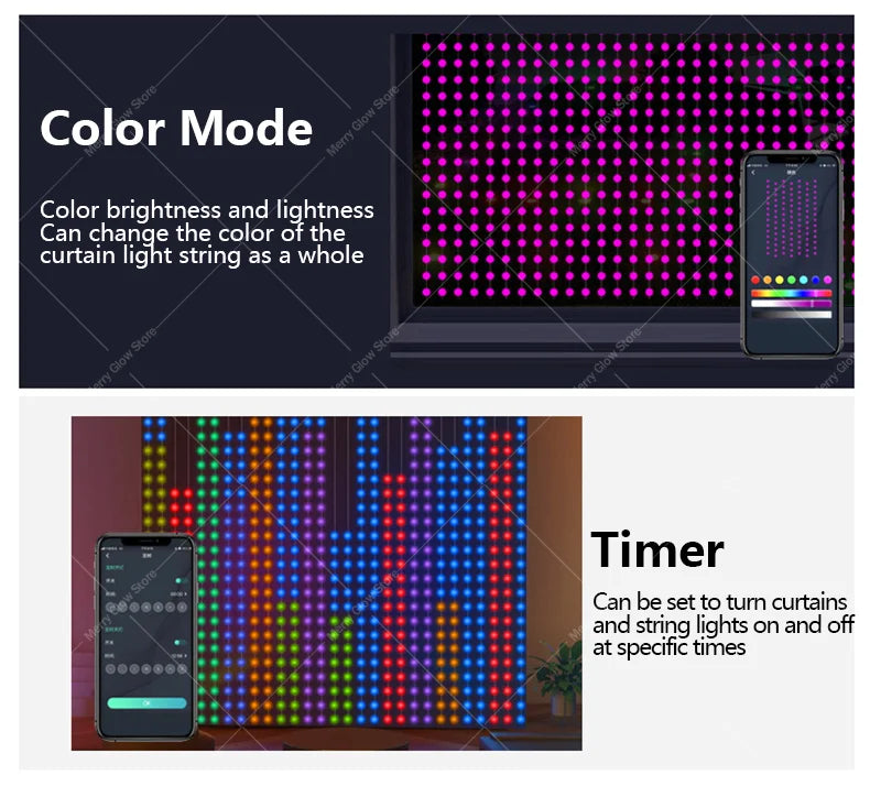 400LEDs Curtain Light String RGB String Lights APP Remote Control Music Sync USB Plug Curtain Light for Room Curtain Decorations