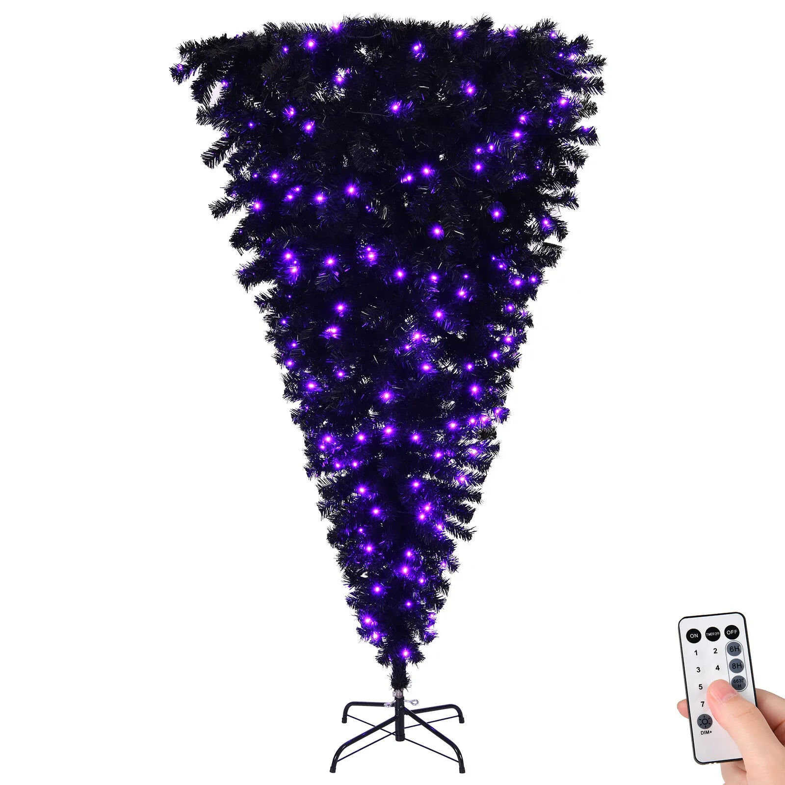 6ft Pre-Lit Premium Hinged Artificial Xmas Christmas Tree 250 LED Light Black