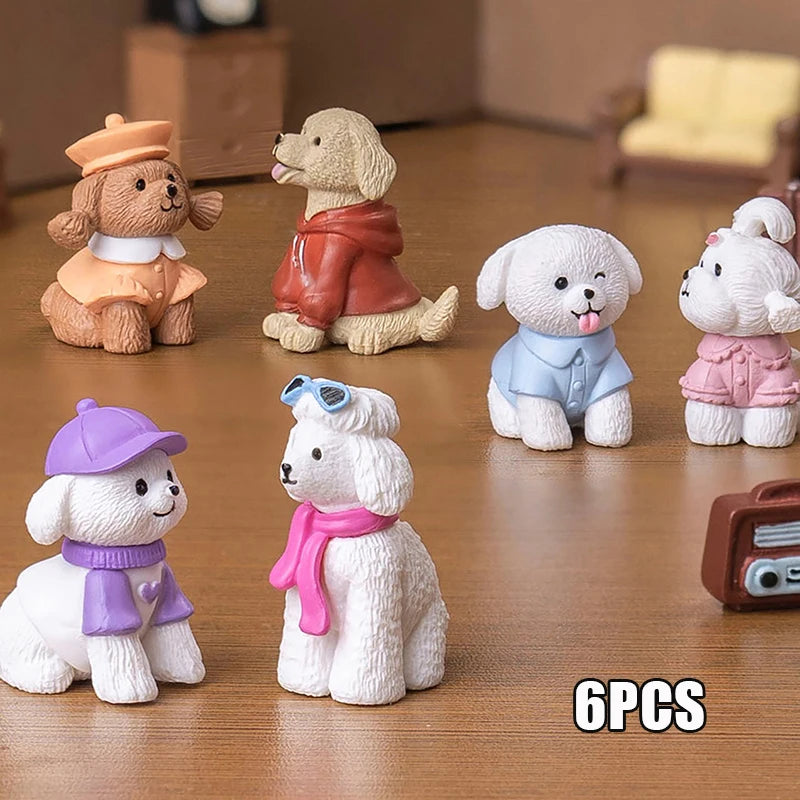 6PCS Desk Accessories Figurines Miniatures Cute Simulation Dog Pomeranian Micro Landscape Ornaments For Home Decoration