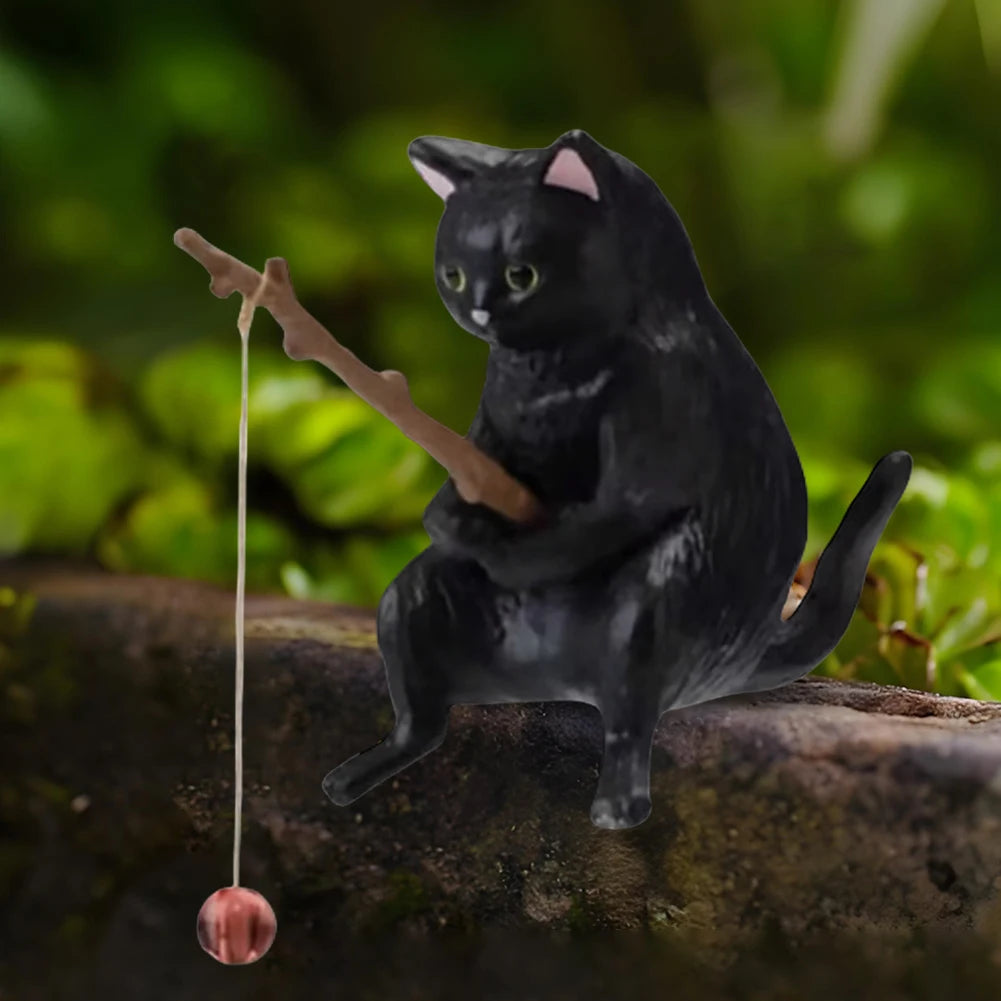 Fishing Cat Ornament: Fish Landscaping Cartoon Cat Statue