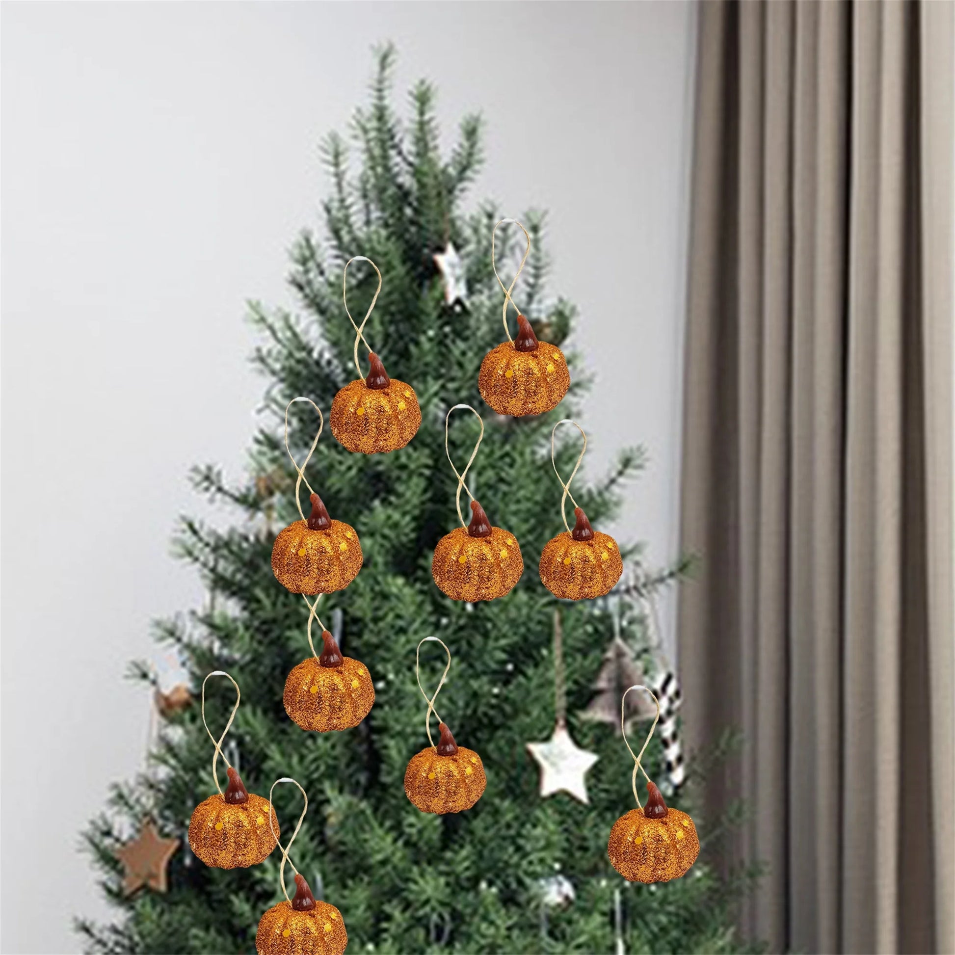 Autumn Harvest Mini Pumpkin Decor Set - Sparkling Pumpkin Ornaments for Home Fall Party Decor and Favors