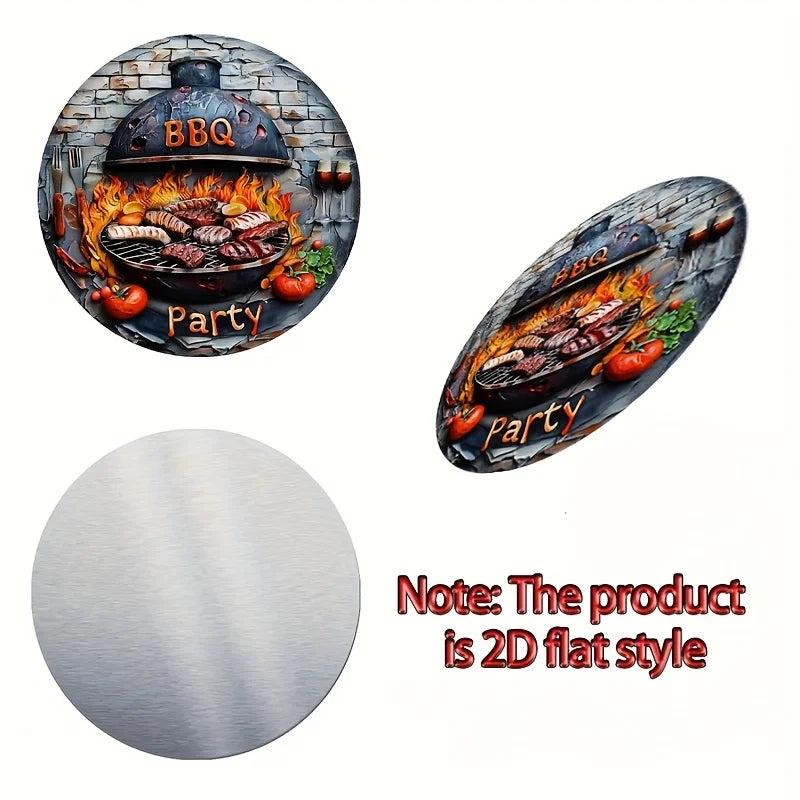 BBQ Party 2D Flat Tin Sign - 8"x8" Vibrant Grill Art, Rustic Porch Camping Decor, Outdoor Themed Gatherings, 1pc