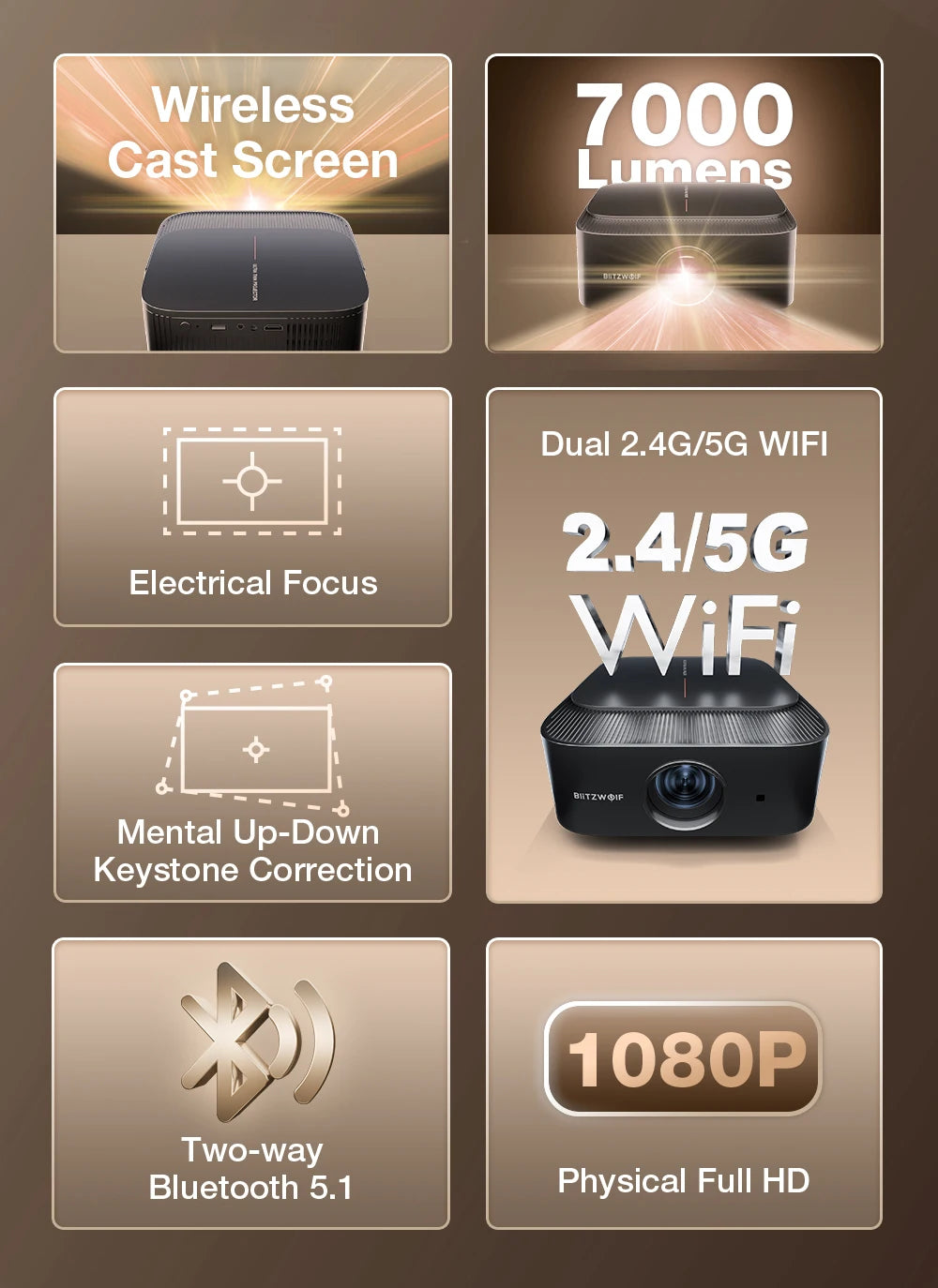 Blitzwolf V10 3" LCD Projector 120-Inch Screen 2.4G/5G Wireless Cast Screen