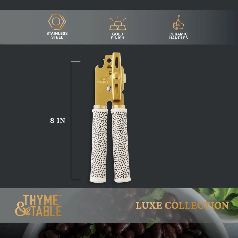 Can Opener Durable Metal Ceramic Dot Handle Comfort Grip Non Slip Easy Use Kitchen Tool Canned Vegetables Fruits Beans