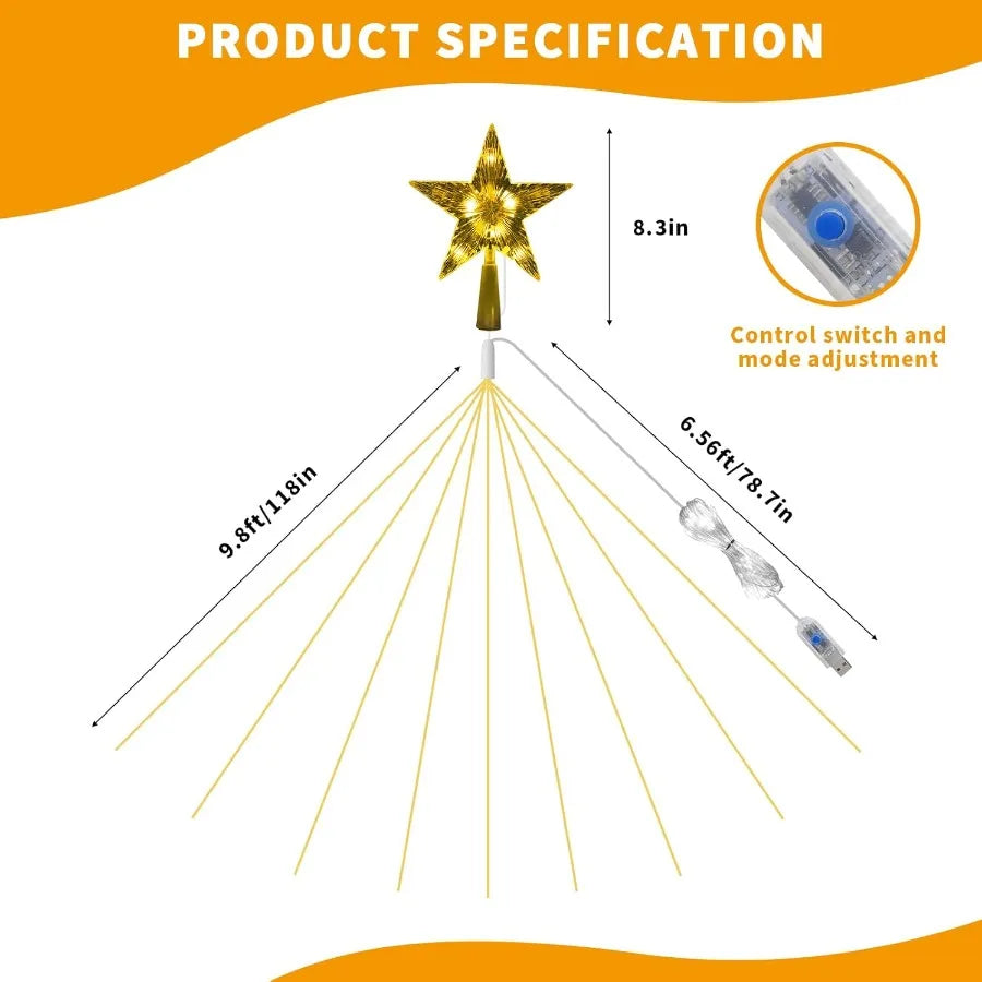 Christmas Lights Outdoor Outdoor Christmas Decorations Star String Lights 9.8Ft 288LEDs 8 Modes Waterproof Remote Control Tree