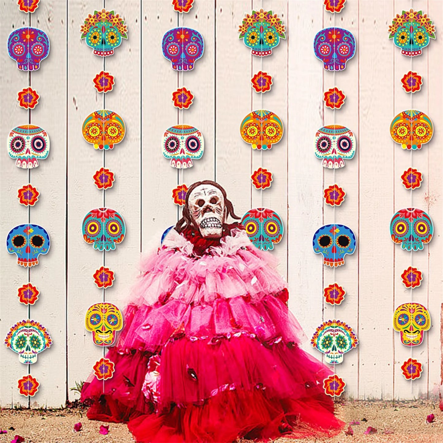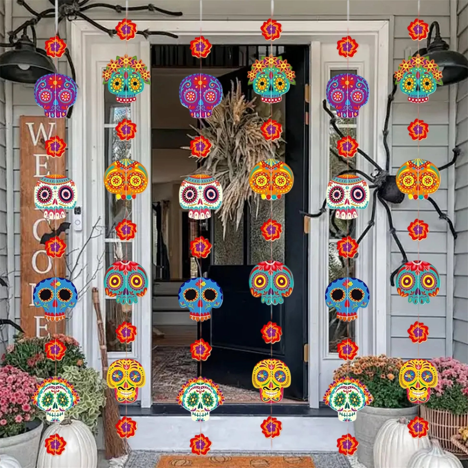 Day of the Dead Party Supplies 8 Pcs Sugar Skull Decorations Mexican Fiesta Banner for Home Wall Door Hanging Decorations