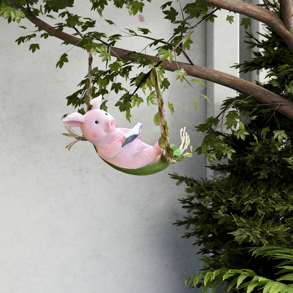Decorative Piggy Shape Statue Waterproof Pig Swing Sculpture Ornament Lovely Pig Landscape for Outdoor Balcony Patio Tree Decor