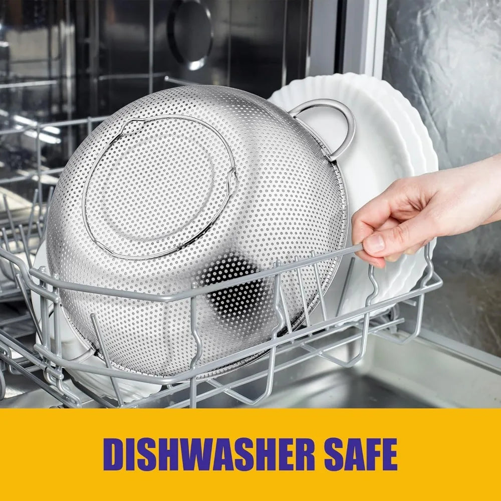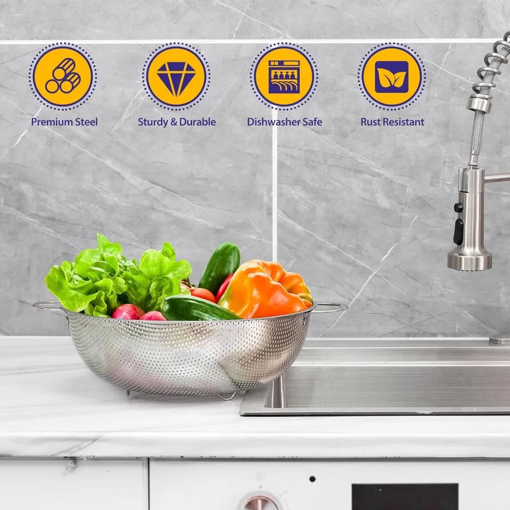 E-far Stainless Steel Colander, 3-Quart Micro-Perforated Metal Colander Strainer with Handle for Kitchen/Draining Pasta/Rinsing