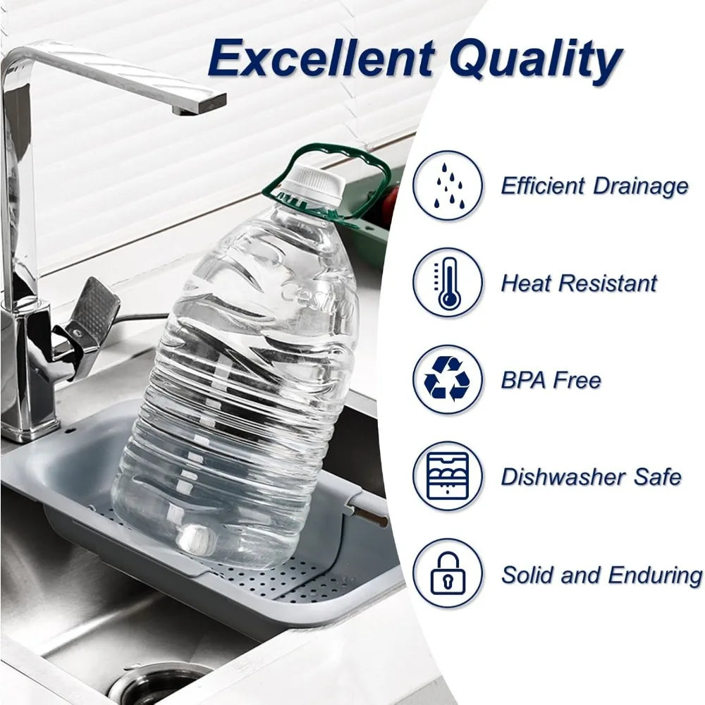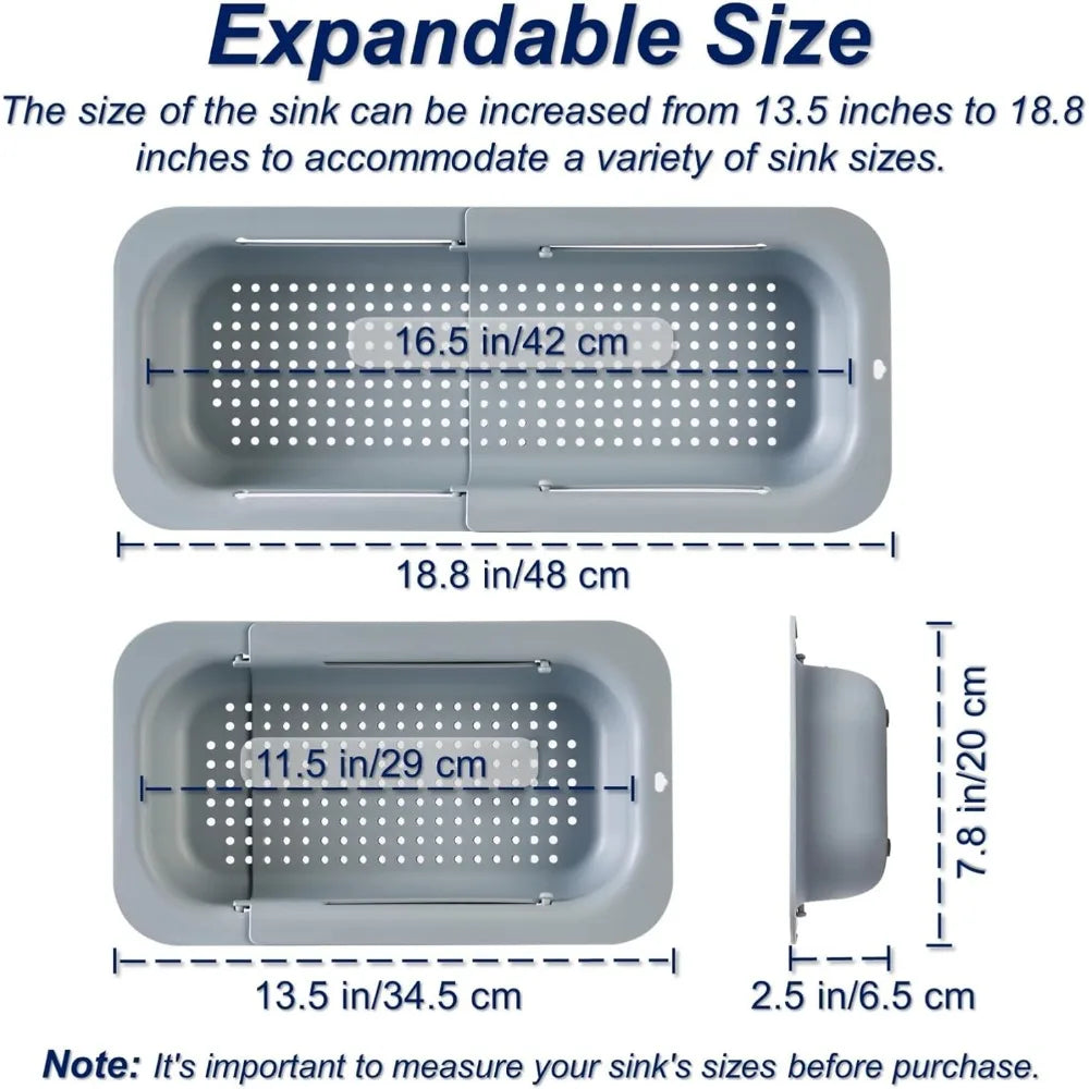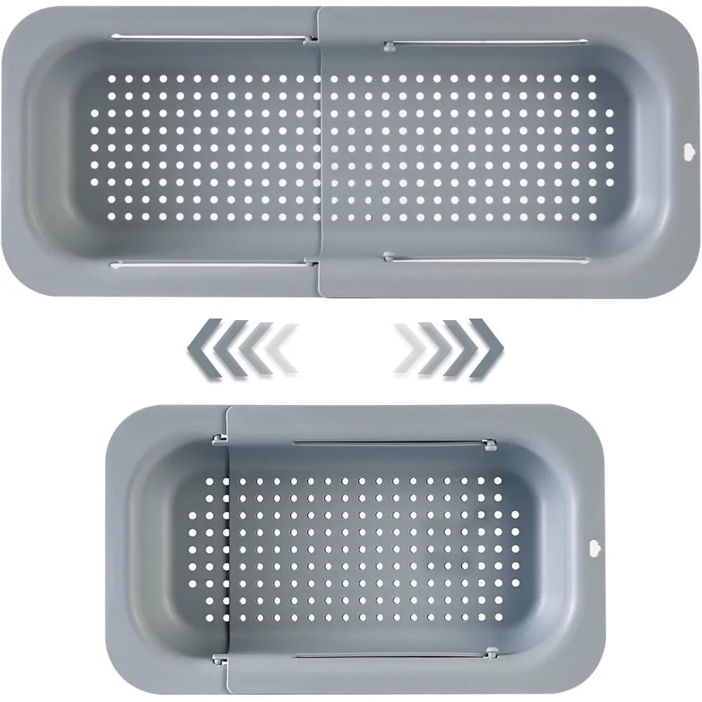 Extendable Sink Colander Strainer Basket - Wash Vegetables and Fruits, Drain Cooked Pasta and Dry Dishes - Adjustable Over the S