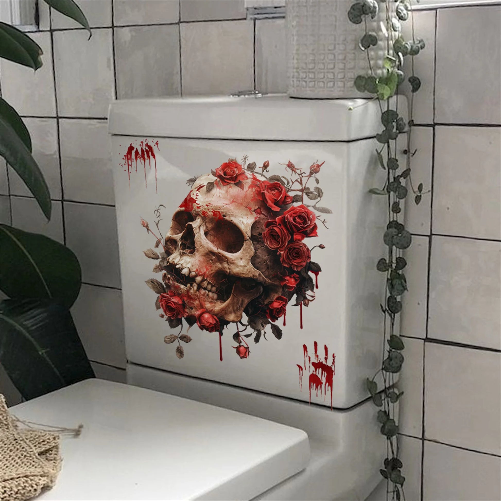 Gothic Skull and Roses Toilet Seat Decals Halloween Bathroom Stickers for Kitchen Decorations and Accessories