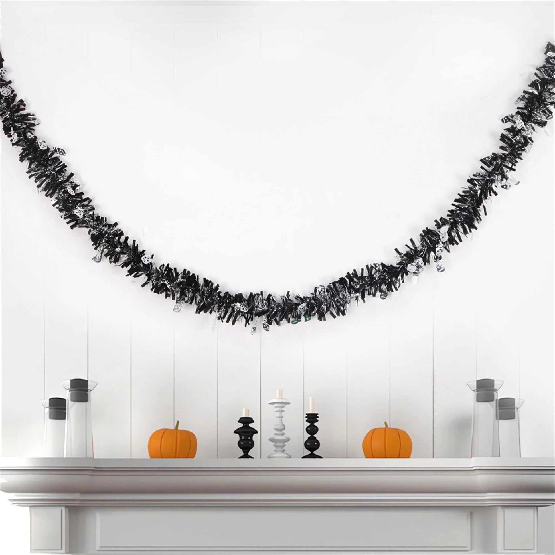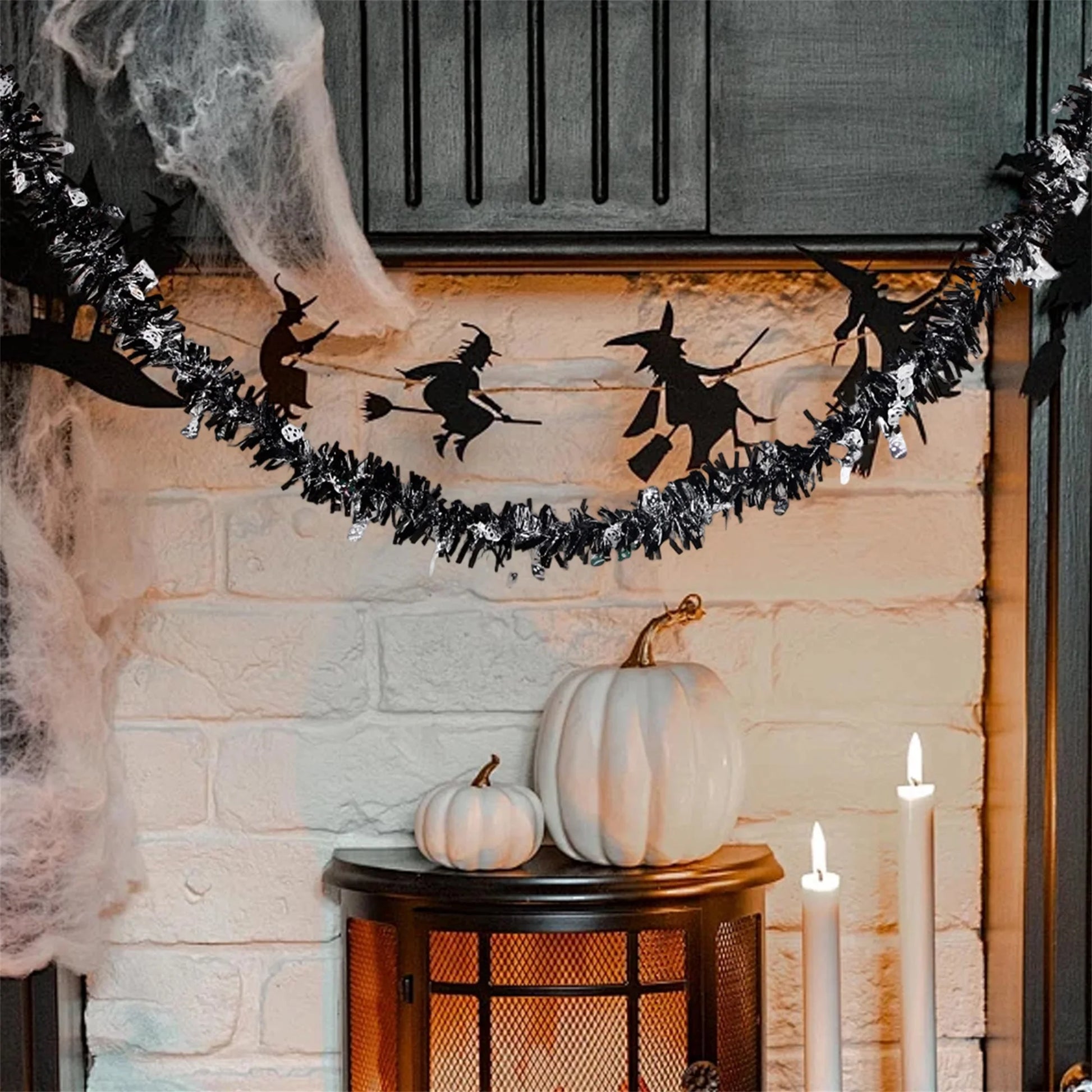 Halloween Spider Web Tinsel Garland with Ghosts Witches Spiders for Mantel Hanging Party Decorations and Wall Art