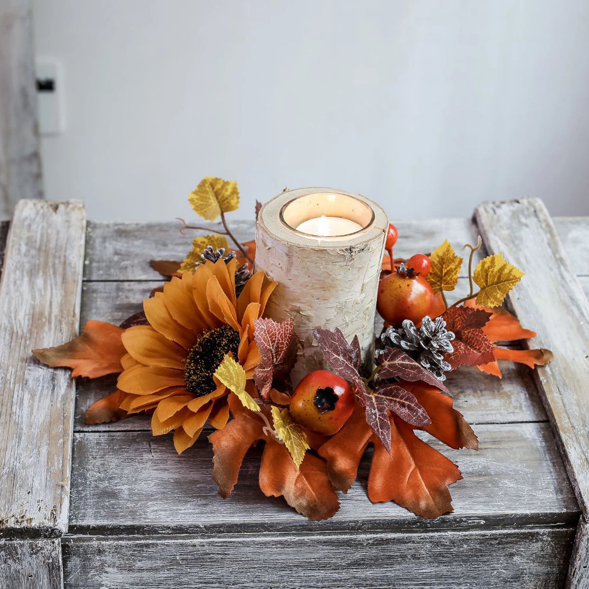 Harvest Pumpkin Spice Scented Candle Centerpiece Autumn Maple Leaf Garland Thanksgiving Table Decoration