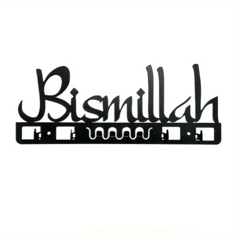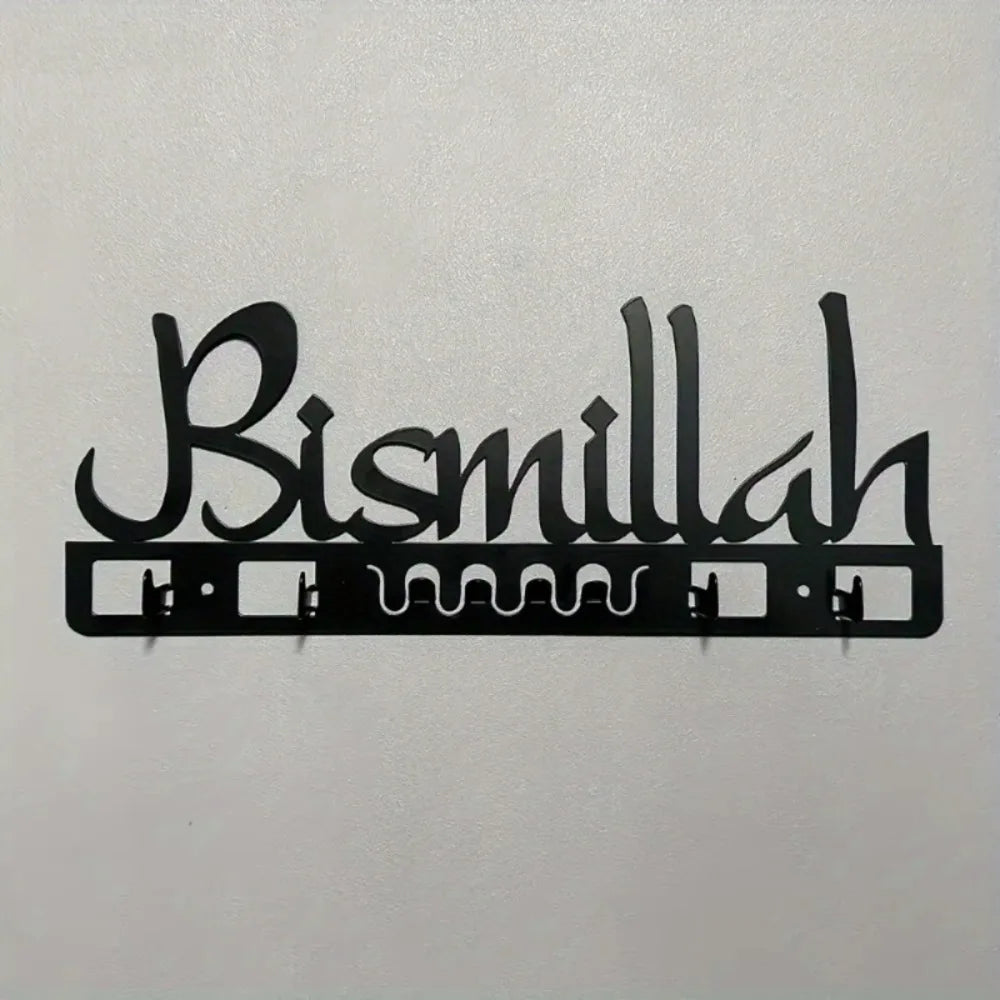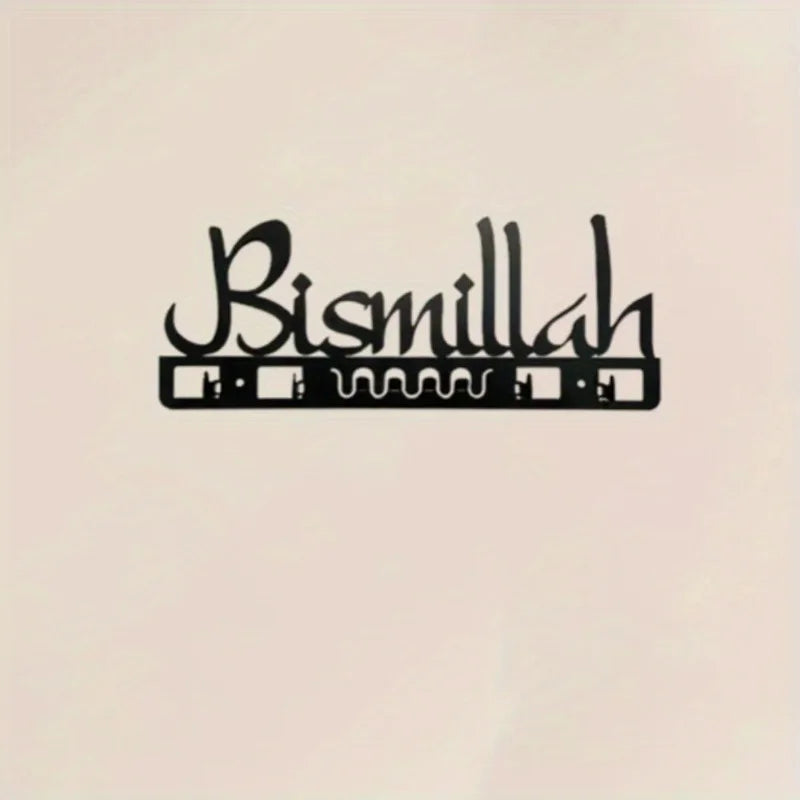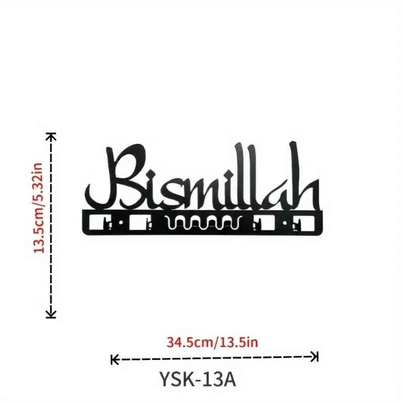 Islamic Decorative Metal Key Holder Wall Art - Delightful Arab-Style Bathroom Decor, Muslim Gift, Geometric Calligraphy Design
