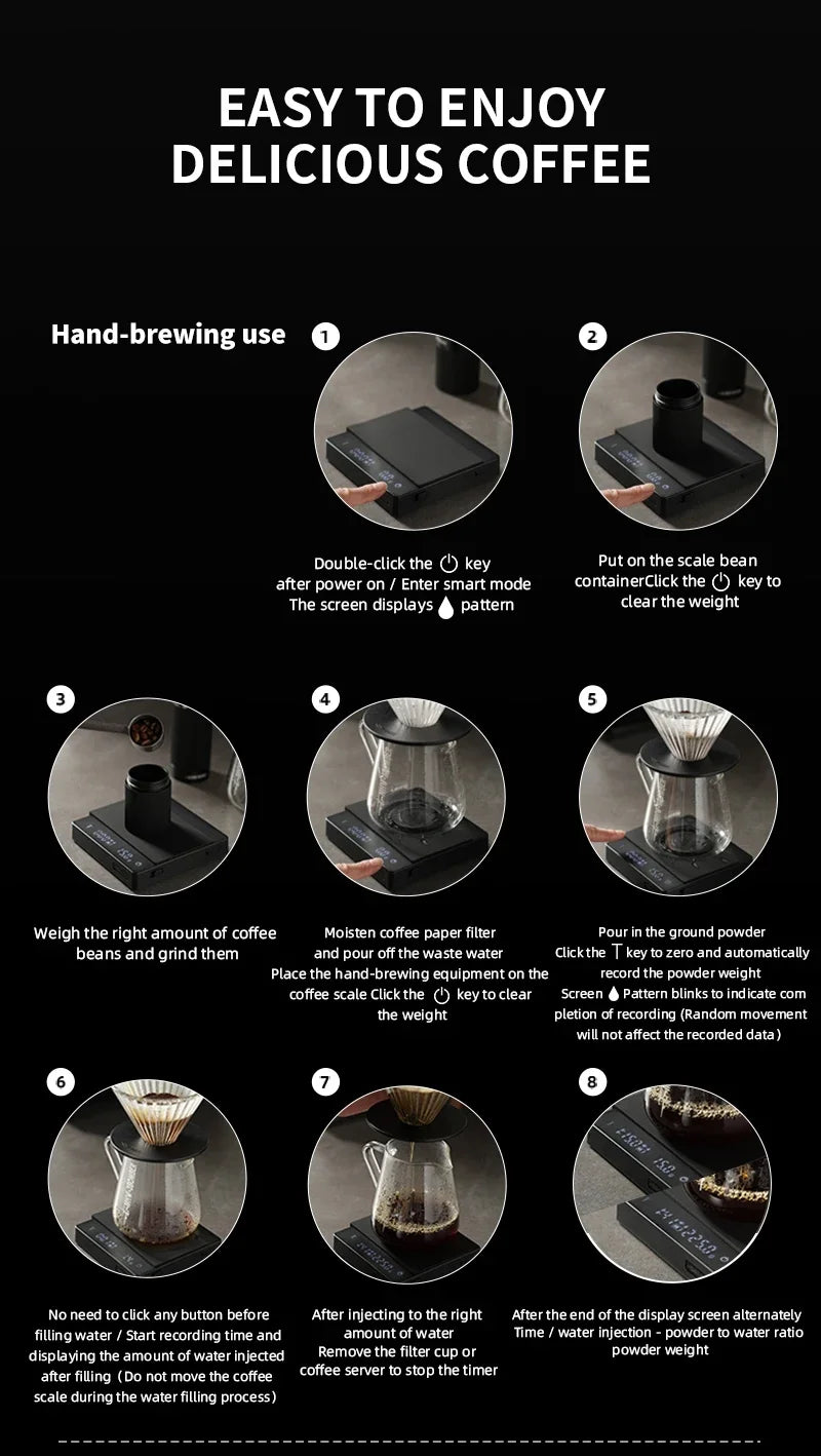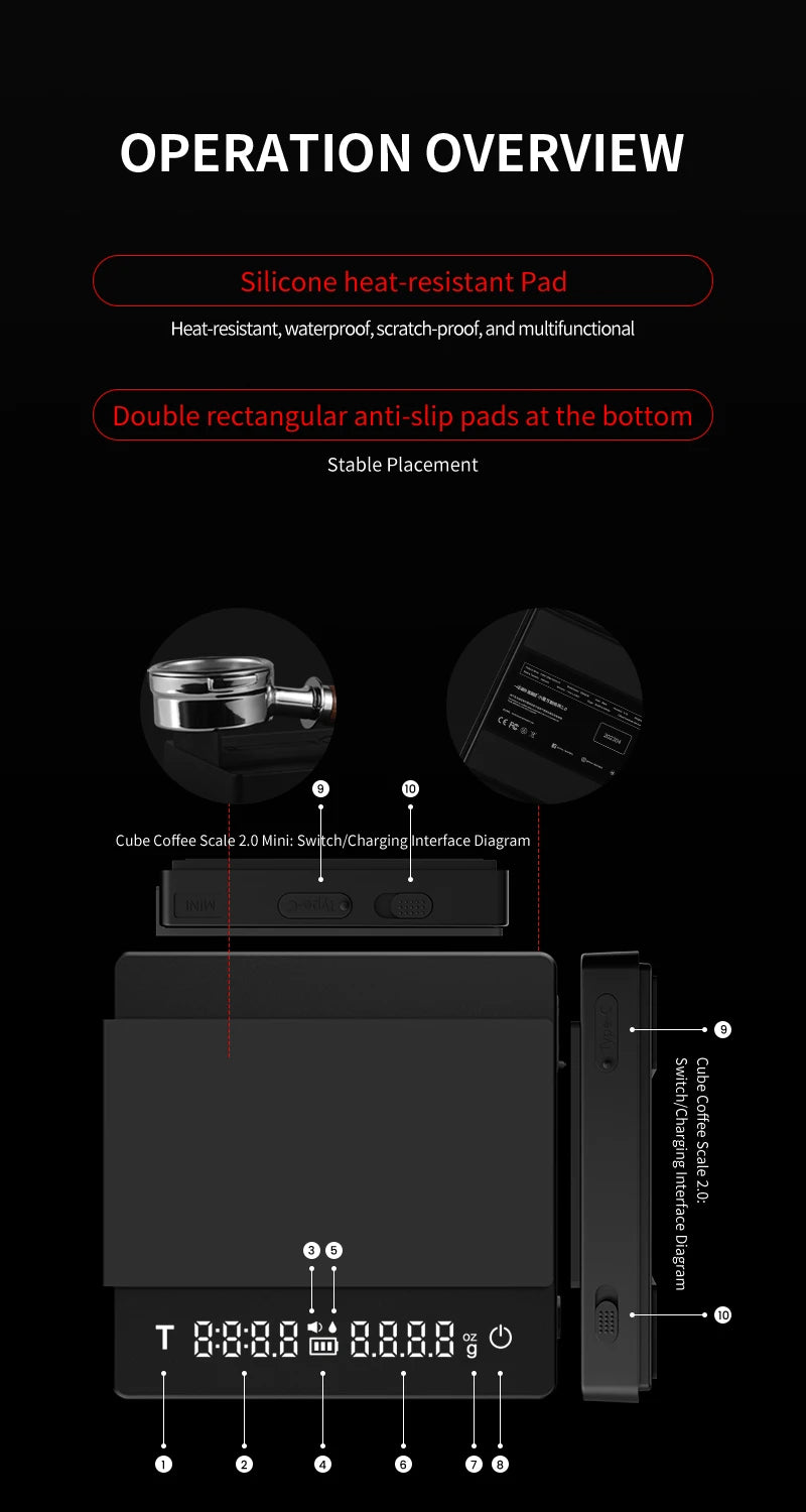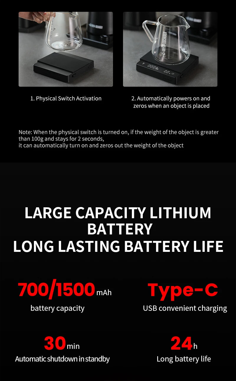 MHW-3BOMBER Digital Kitchen Coffee Scale High Precision Cyclic Rechargeable Espresso Electronic Scale Home Barista Accessories
