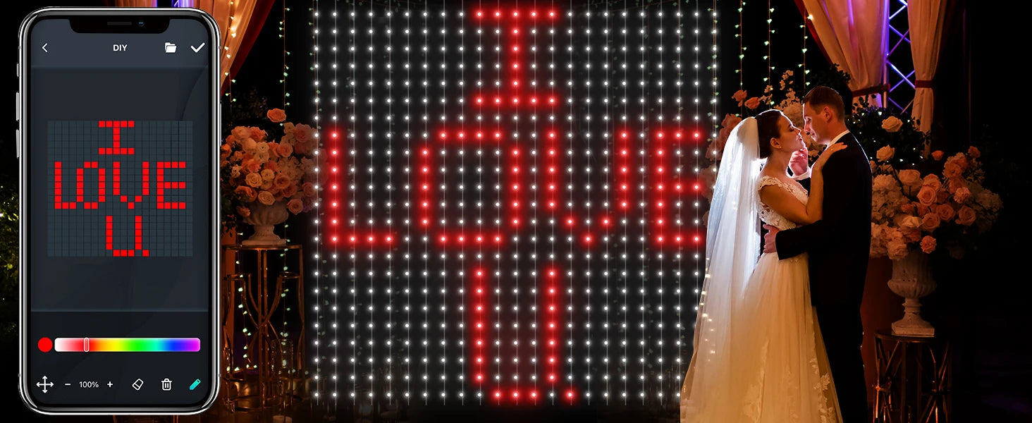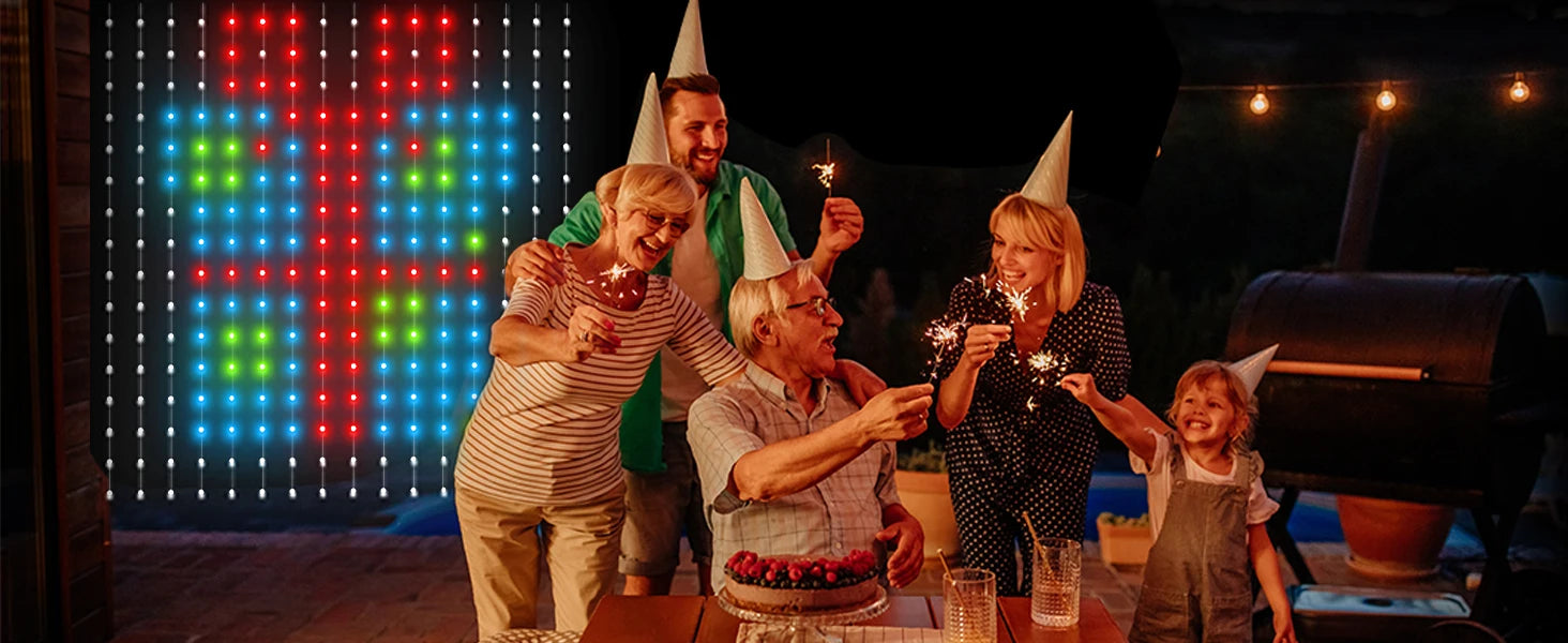 MIMI RGB Curtain Lights 400LEDs,Smart LED Curtain Light,IP65 Waterproof,Smart LED Wall Lights with APP&Remote