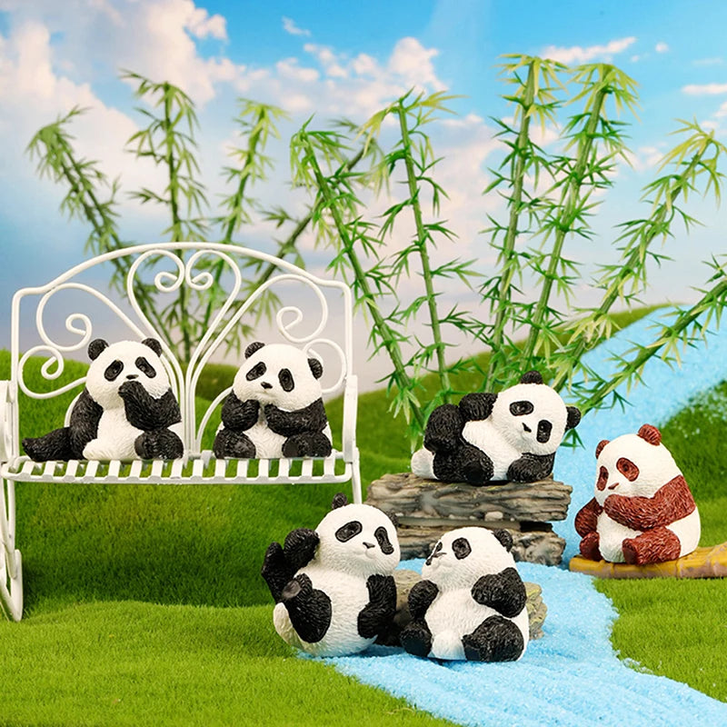 Mini Cute Panda Animals Figurine Animal Model Moss Micro Landscape Home Decor Miniature Fairy Garden Decoration Accessories