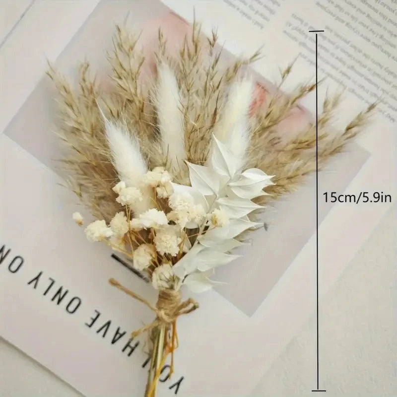 Mini Dried Flower Bouquet Set of 12 Boho Wedding Decor Boutonniere for Men Table Centerpieces Pampas Grass For Birthday Cake