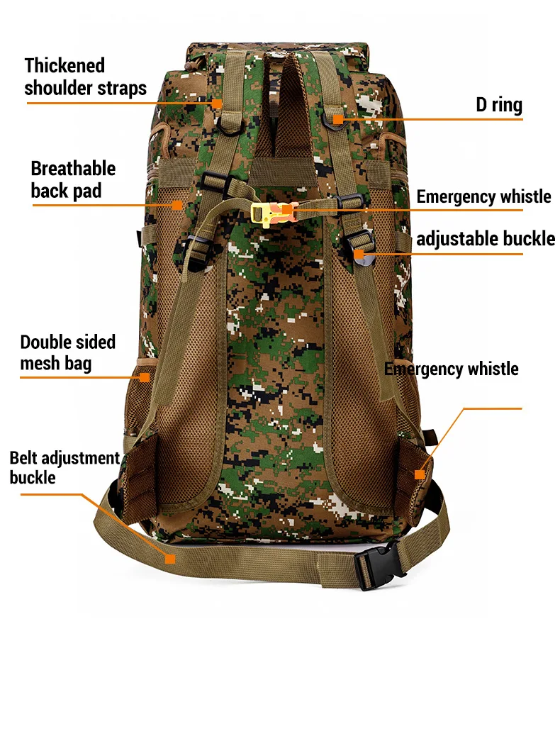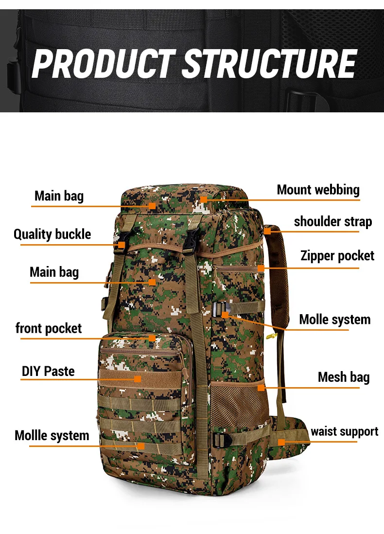 Outdoor Multi-Function Tactical Backpack Oxford Cloth Wear-Resistant Large Capacity Hiking Bag Backpack for Hiking and Camping