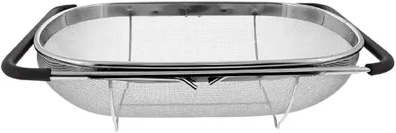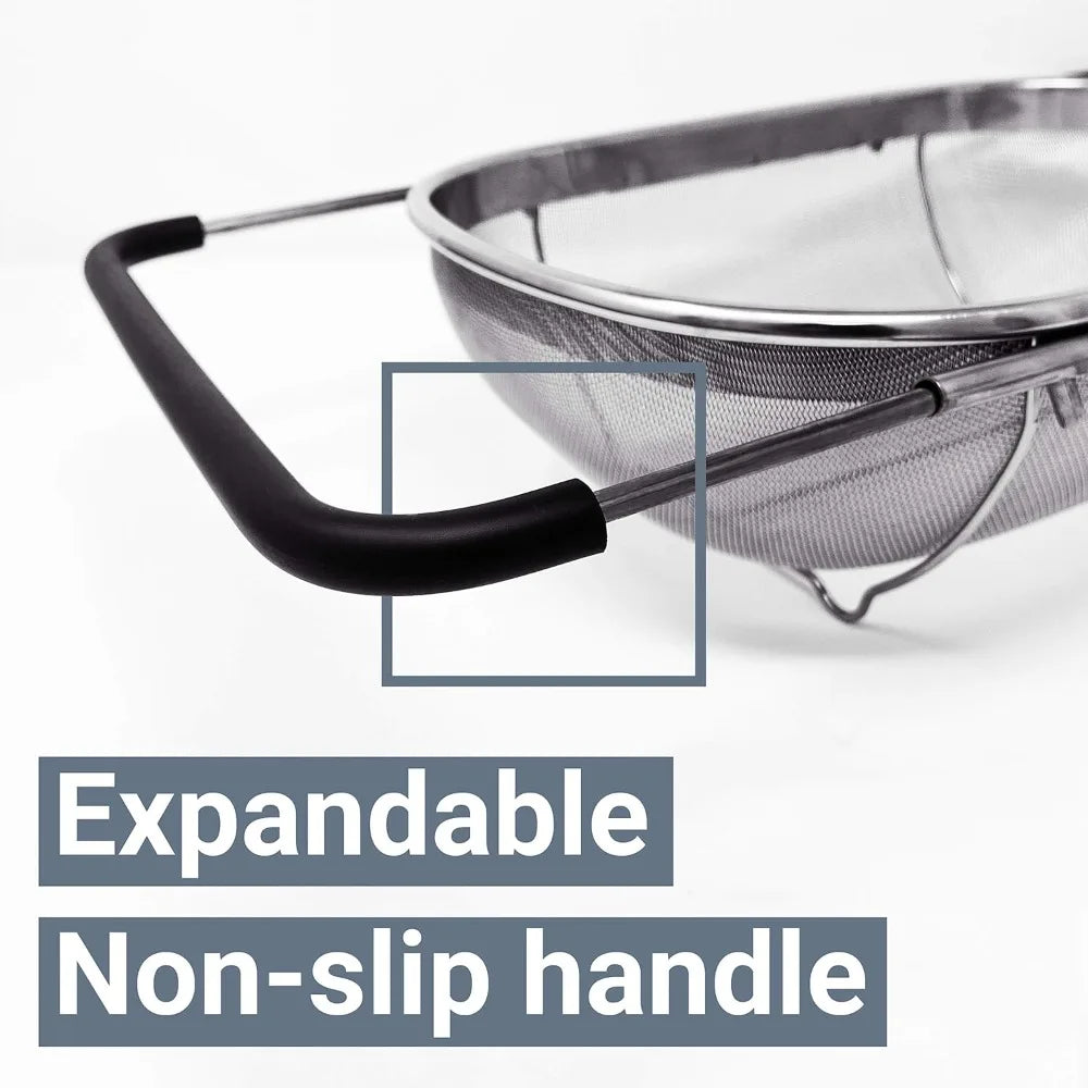 Over the Sink Colander Strainer Basket Stainless Steel, For Kitchen Sink with Rubber Grip, Fine Mesh, Large Kitchen Gadgets Too