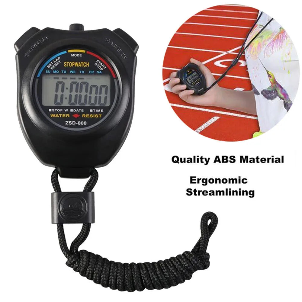 Portable Waterproof Chronometer Handheld Stopwatch Digital Sport Stopwatch LCD Timer Stop Watch Timer Tool Black