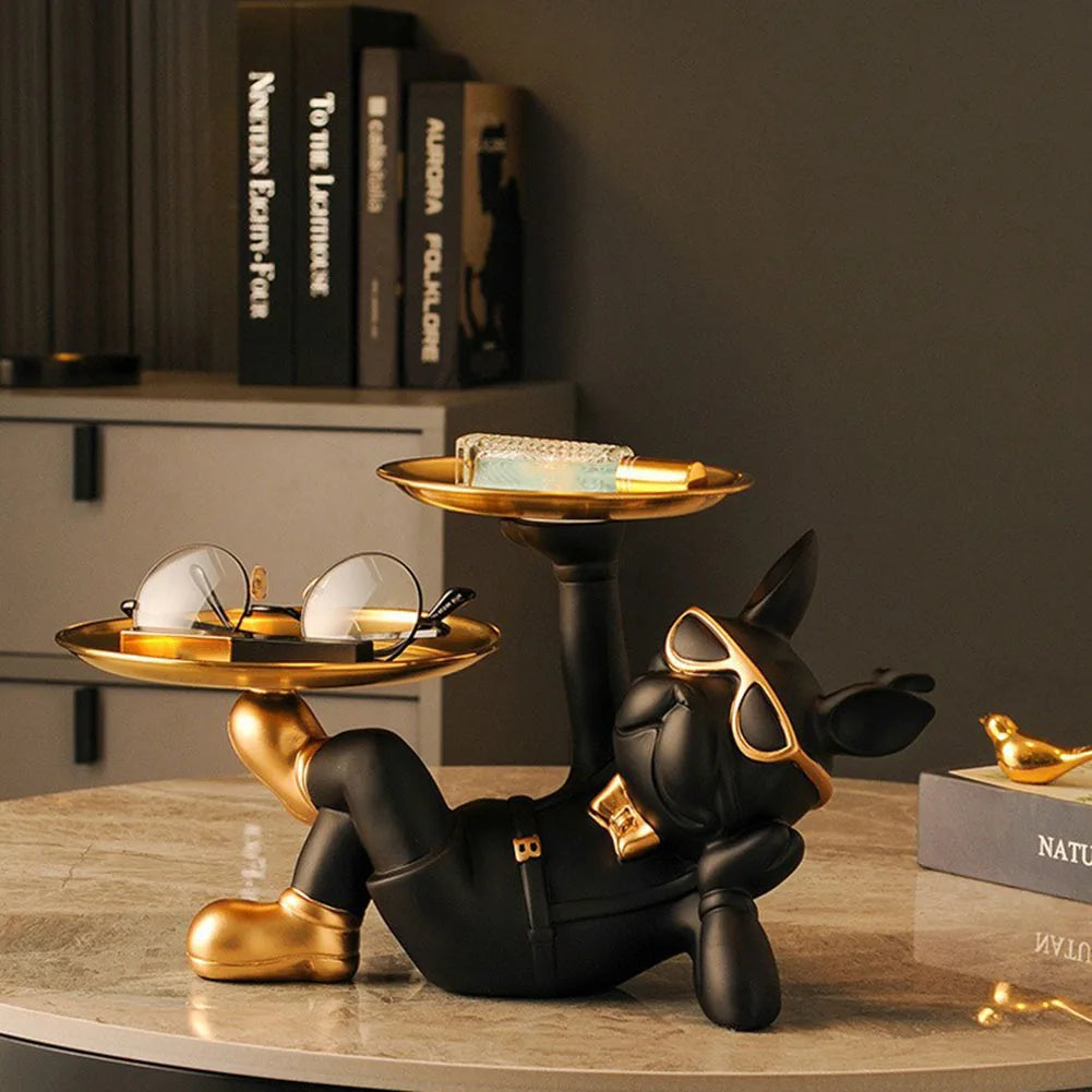 Resin Dog Statue Decor Creative Cute with 2 Tray French Bulldog Sculpture Birthday Gifts Bottom Anti-slip for Home Office Wallet