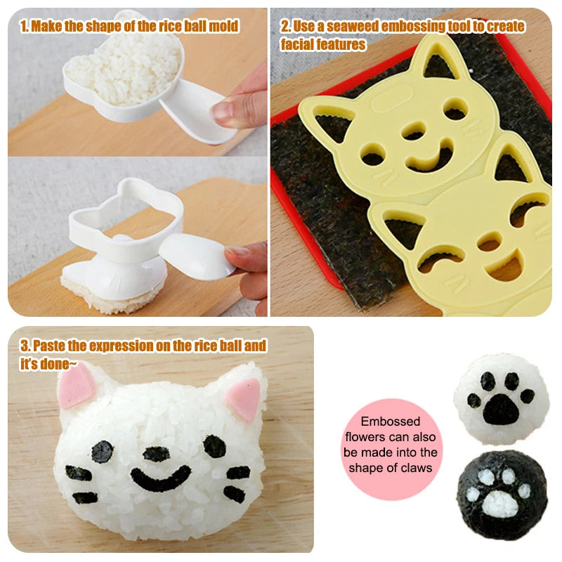Rice Ball Mold Set Chicken Bear Kawaii Sushi Curry Rice Mould Pattern Bento Accessories Seaweed Cutter Kitchen Tools