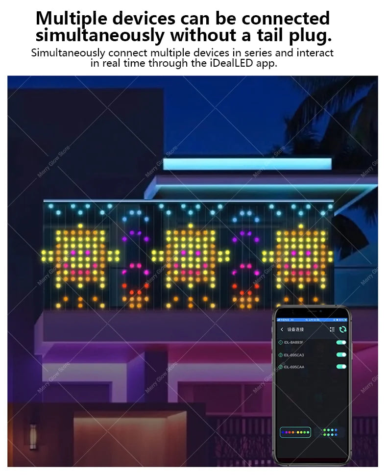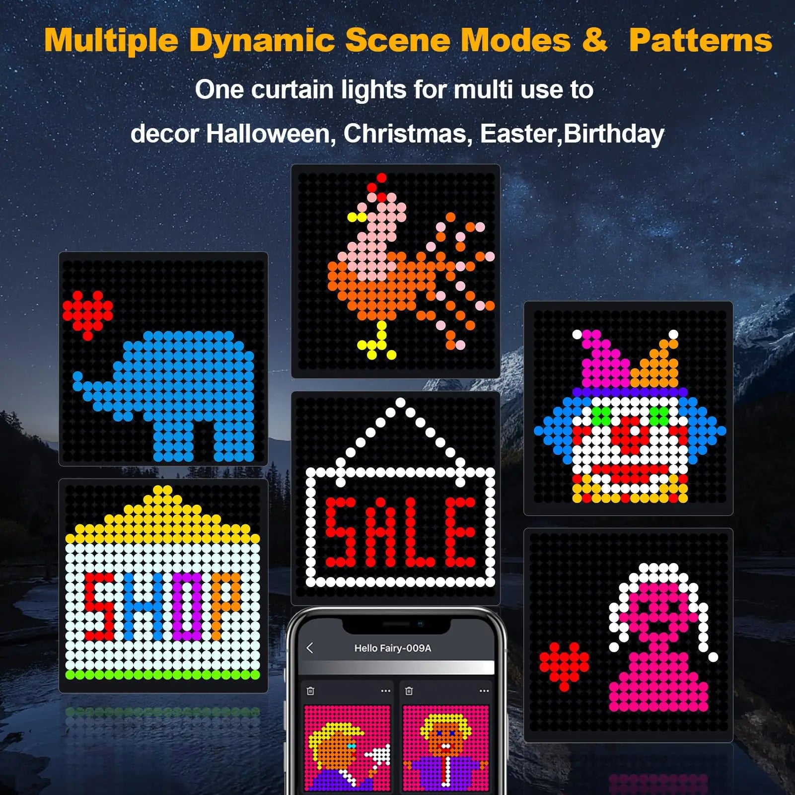 Smart Curtain Lights Bluetooth App Control RGB LED String Waterproof Fairy Light USB DIY Text Pattern Display Halloween Decor