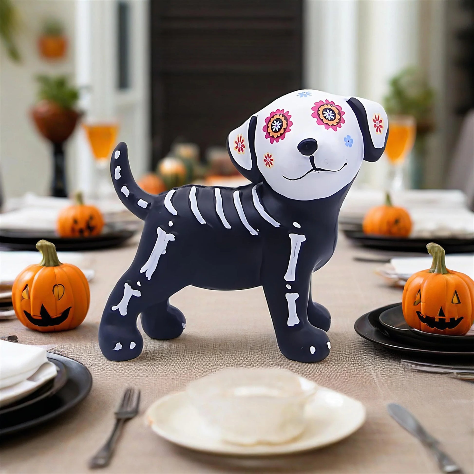 Spooky Halloween Resin Figurine Cute Dog Cat Desktop Decorative Ornaments for Home Living Room Office Decoration