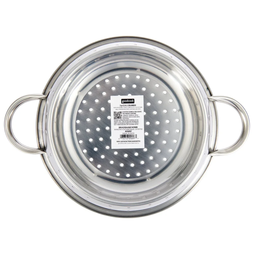 Bring high-quality kitchen tools to your home with the Pro 3-Quart Colander. Designed with home cooks in mind, this colander is great for washing fruits and vegetables, draining pasta and noodles, rinsing beans and canned goods, and more. With an extra-deep 3-quart capacity and ideal drainage hole size, it's perfect for larger quantities of produce. The elevated base allows water to pass through efficiently and keeps the bowl thoroughly raised from surfaces, and the sturdy handles on both sides make it easier to hold and keep your hands dry while in use. Constructed with durable stainless steel, these colanders provide years of quality use, and hand washing is recommended for the best long-lasting results. For over 30 years, has created the tools that have made life in the kitchen easier and more enjoyable. As we’ve grown, we strived to stay on trend and continually incorporate more function and value into our kitchenware products. We take pride in the fact that products are being used every day, and that our name is recognized as a helpful resource supplying products, recipes and inspiration for home cooks across America.