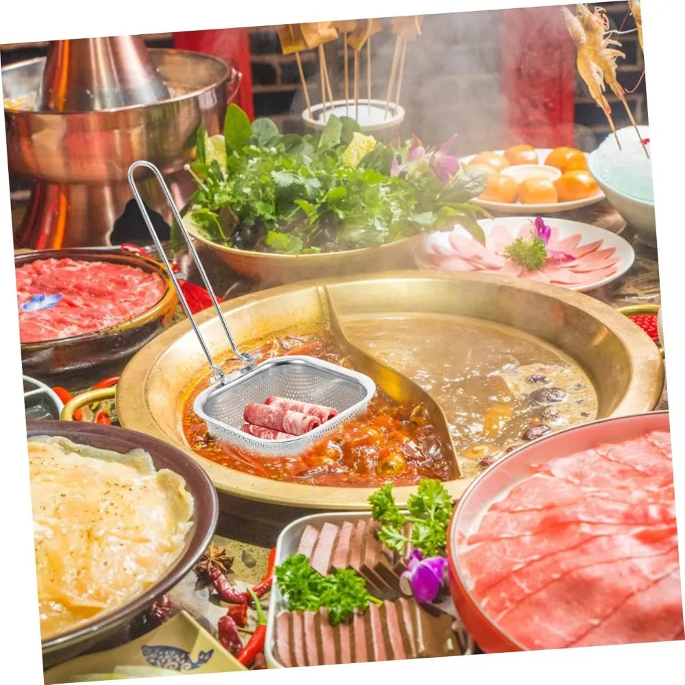 Stainless Steel Mesh Colander with Hook – Foldable Strainer for Hot Pot Deep Frying Noodles – Sturdy Kitchen Tool for Home Cook