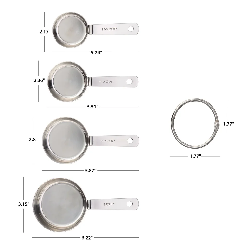 Stainless Steel Nesting Measuring Cups Set of 4 with Handles Locking Ring Engraved Sizes Baking Cooking and Food Preparation