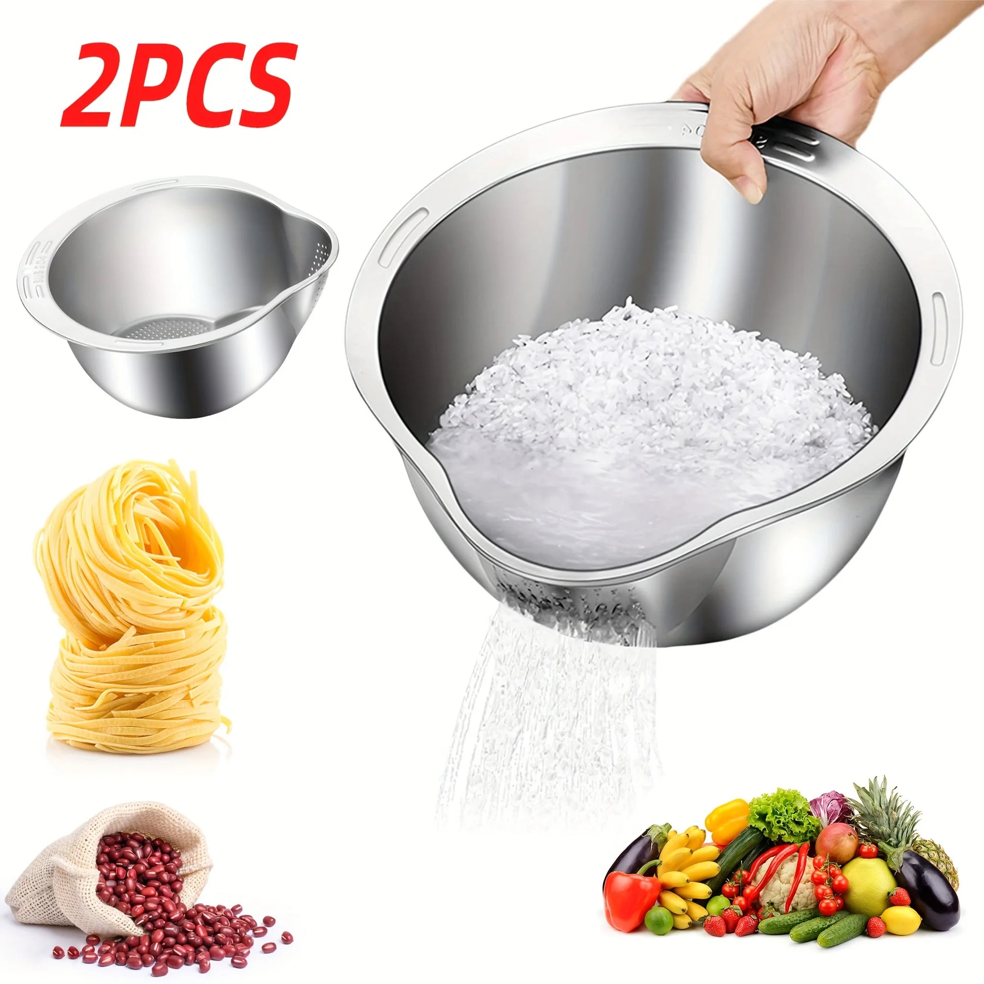 Stainless steel rice washing bowl, multi-function filter and kitchen filter for washing rice, vegetables and fruits
