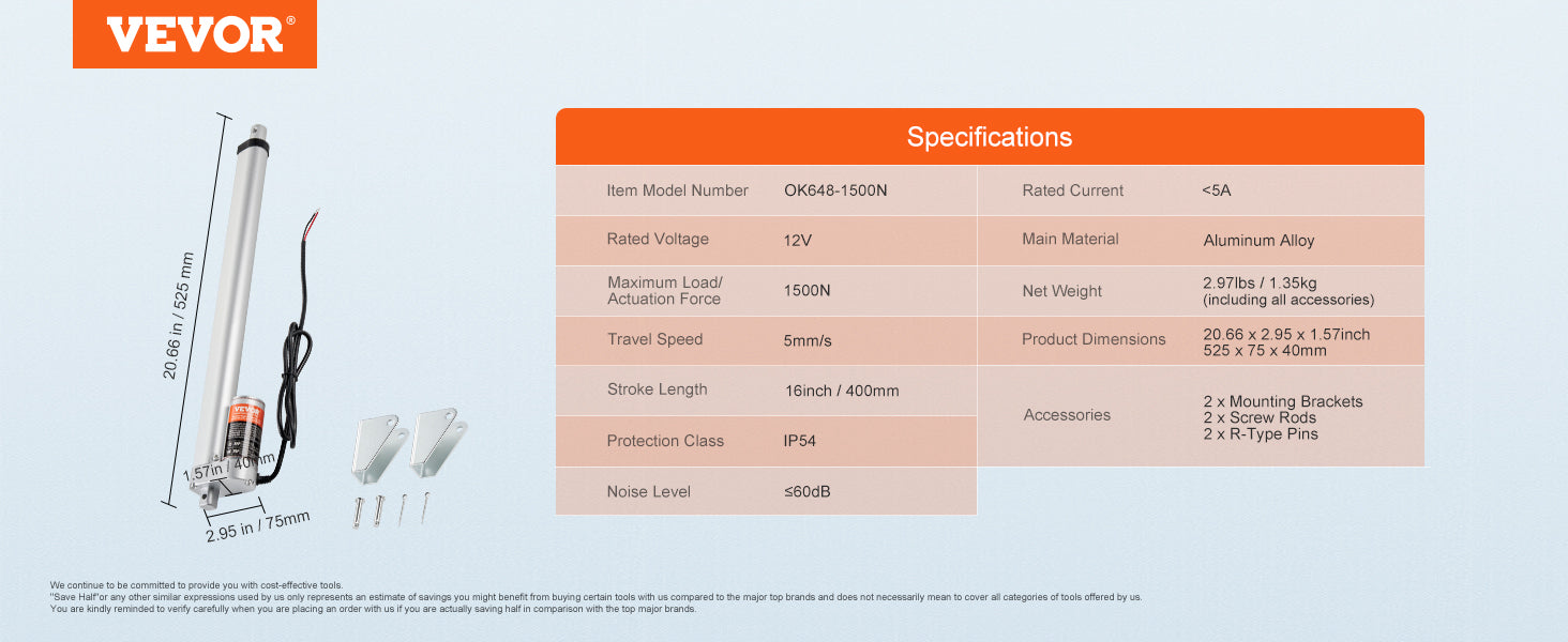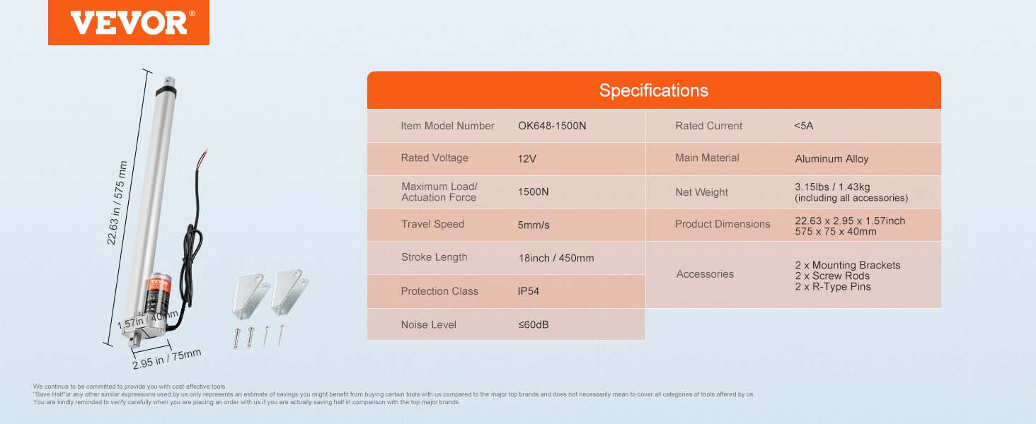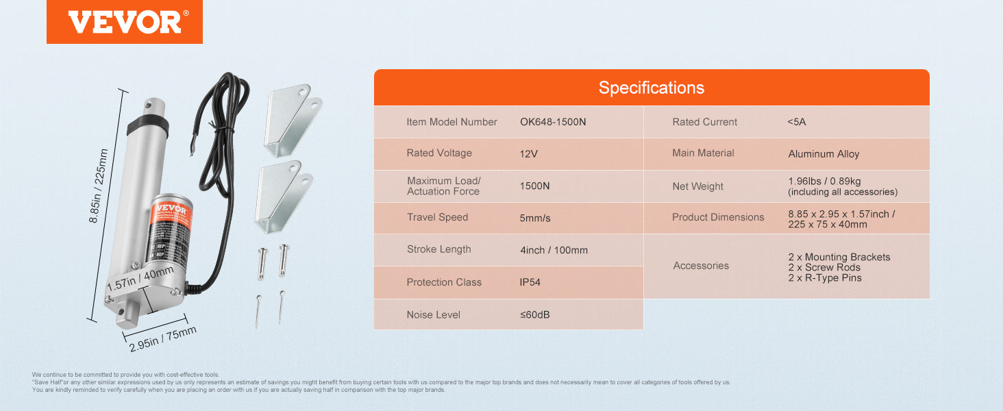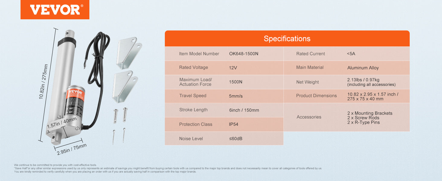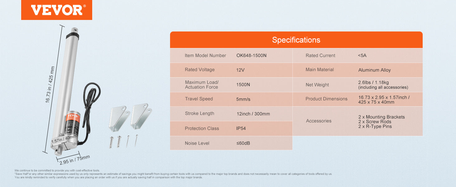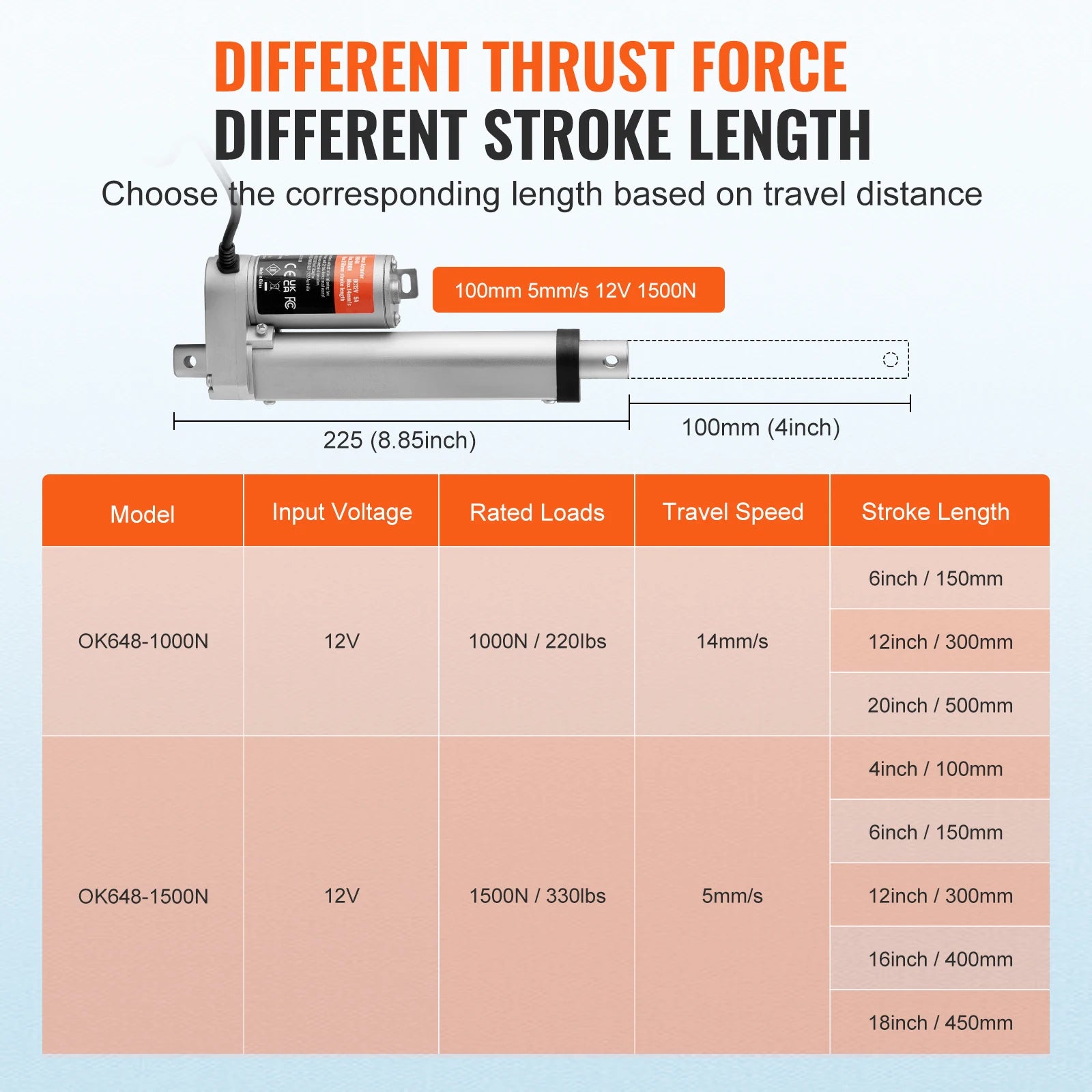 SucceBuy 1500N 12V Linear Actuator Electric Linear Motor Controller with Mounting Bracket For Home Automation Sofa Recliner Lift