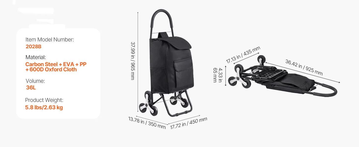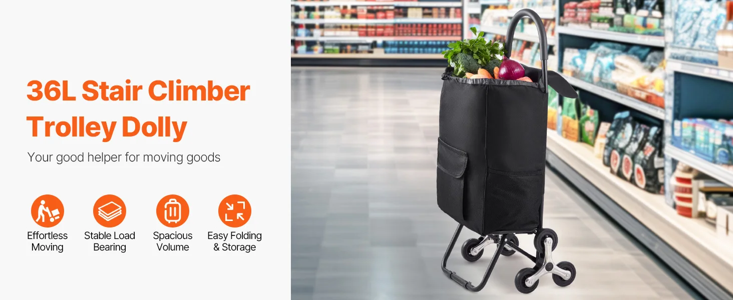 Versatile Applications: With a spacious 36L capacity, this cart for stairs is more than just a transporter. It's your supermarket shopping buddy, storage bin for household items and gardening tools, and beyond! Unleash your creativity and discover its endless uses!