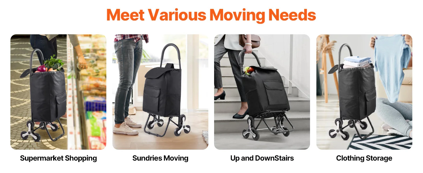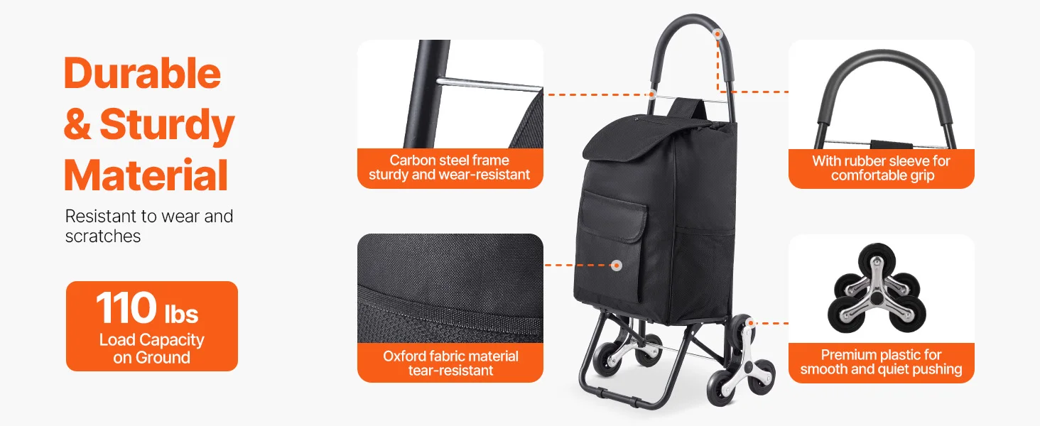 Built Tough, Holds Tons: Crafted from an integrated carbon steel frame and tear-resistant Oxford cloth storage bag, this robust stair cart stands stable and strong for various transportation tasks. Whether you're carting 110 lbs. on flat ground or 40 lbs. upstairs, it won't budge.