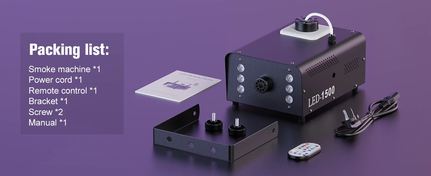 U'King 1500W Smoke Machine RGB 6 LED Fog Machine with Remote Control for DJ Disco Party Nightclub Stage Effect Fogger Machine