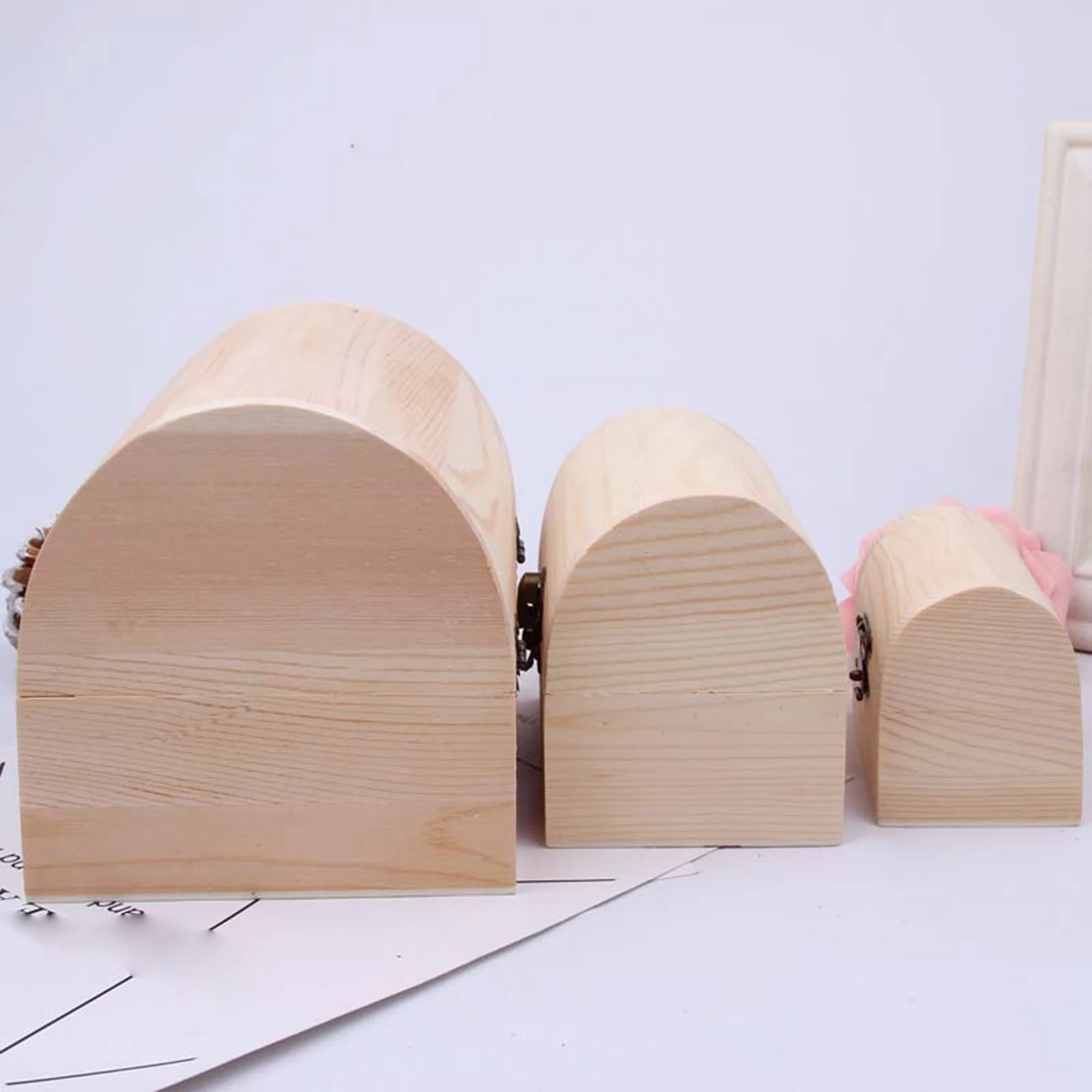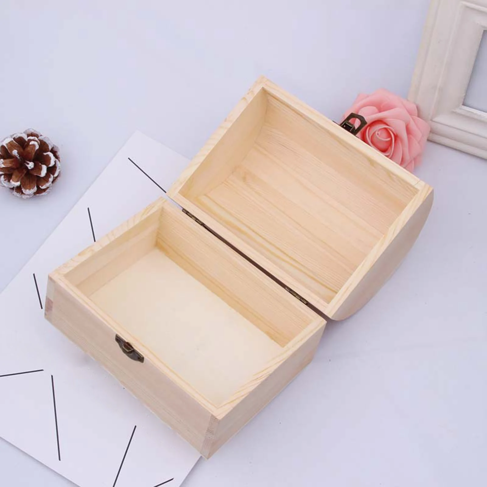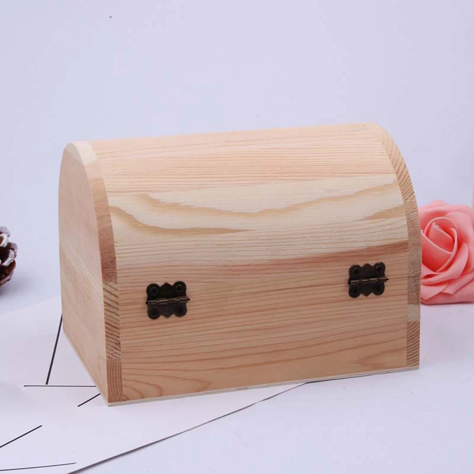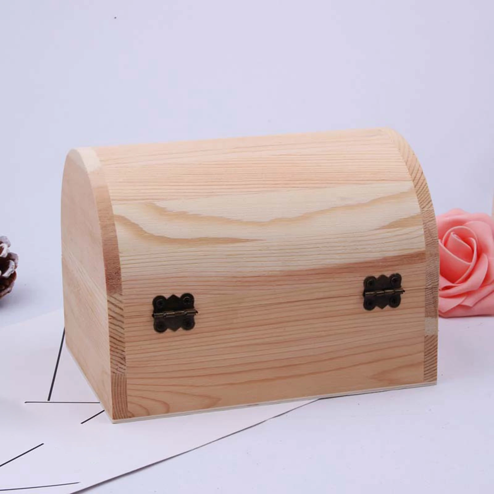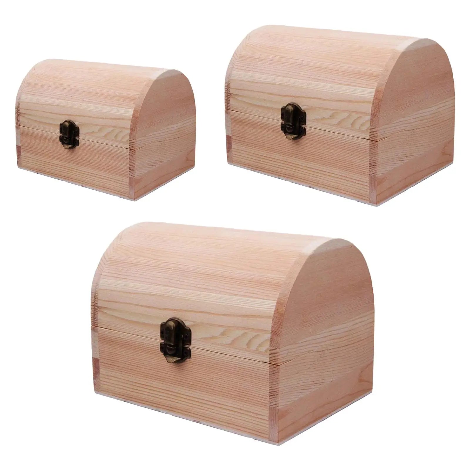 Wooden Box Treasure Chest Box Jewelry Storage Organizer Unfinished Wood Box DIY Painting Craft Box Decorative Storage Box