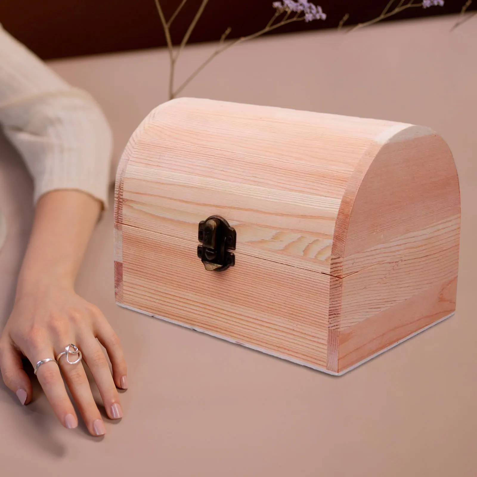 【Lid Lock Design】: Equipped with a lid and lock clasp, the Wooden Plain Unpainted Gift Box effectively prevents dust and dirt from entering, protecting your precious jewels from damage.